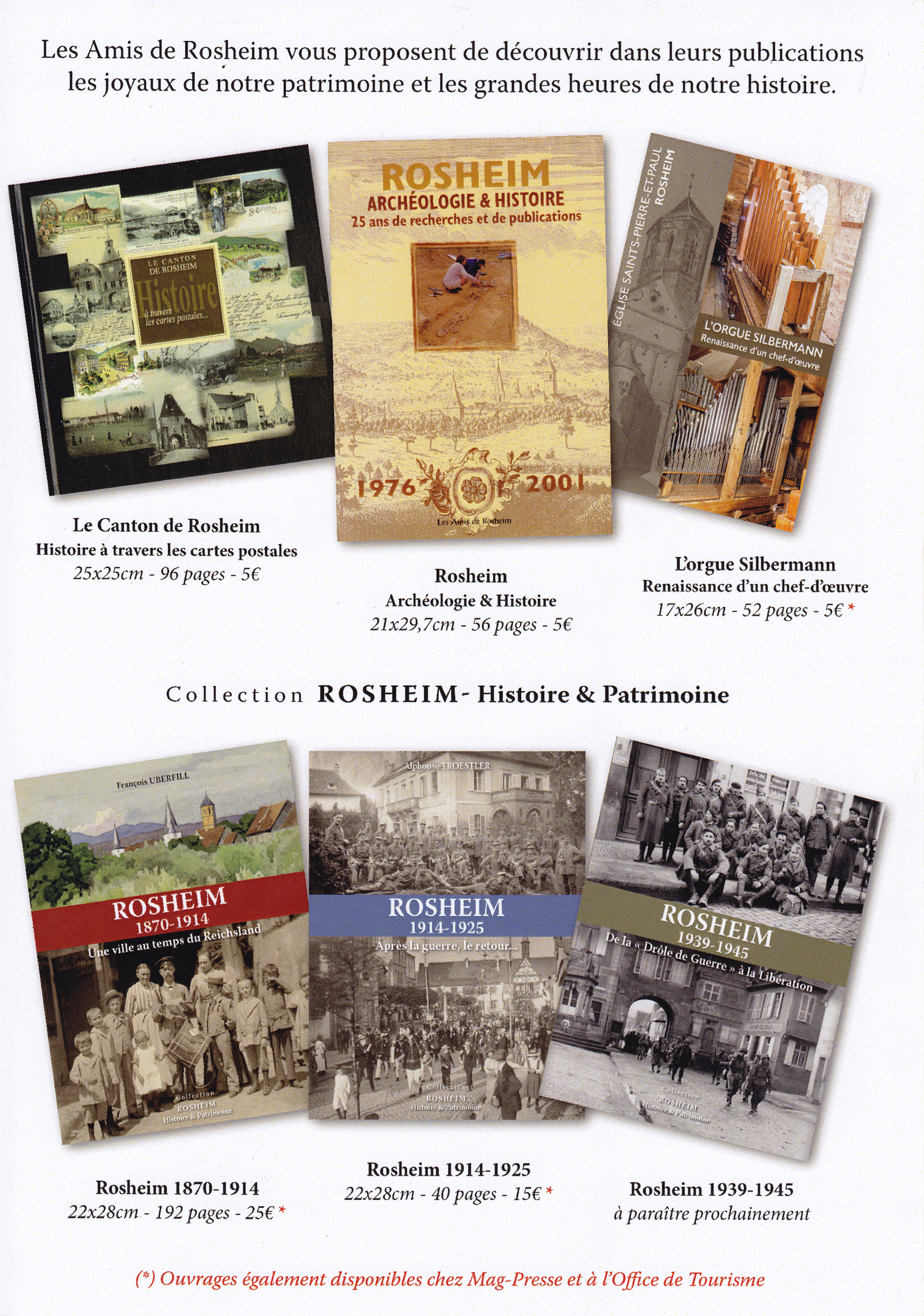 - en le retirant au local de notre association, au prix de 20€, au 95 rue de Général de Gaulle (entrée par l’arrière du bâtiment, côté place du 26 novembre, au 1er étage, à gauche), 67560 ROSHEIM (en face de l’Office de Tourisme), sur RDV, adressez un mail à amisderosheim@gmail.com .