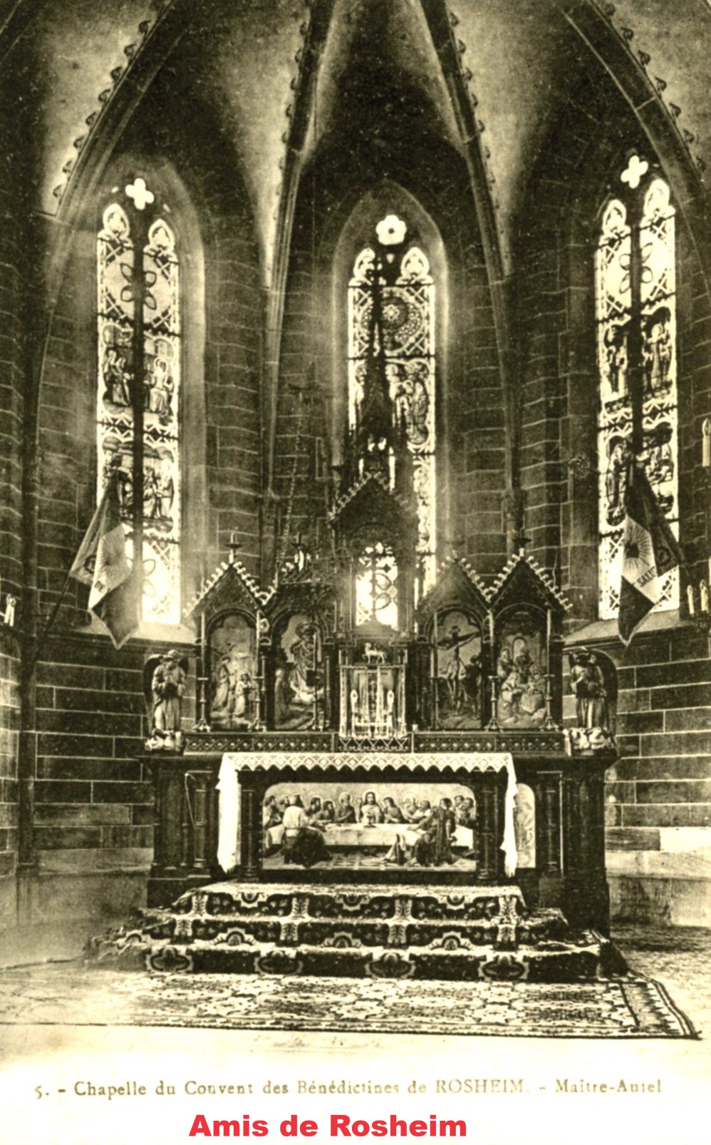 La communauté des bénédictines de l’Adoration perpétuelle du Saint-Sacrement s’est installée à Rosheim en 1862 dans un ancien établissement de bains situé dans l’angle Sud-Ouest de l’enceinte médiévale de la citée.