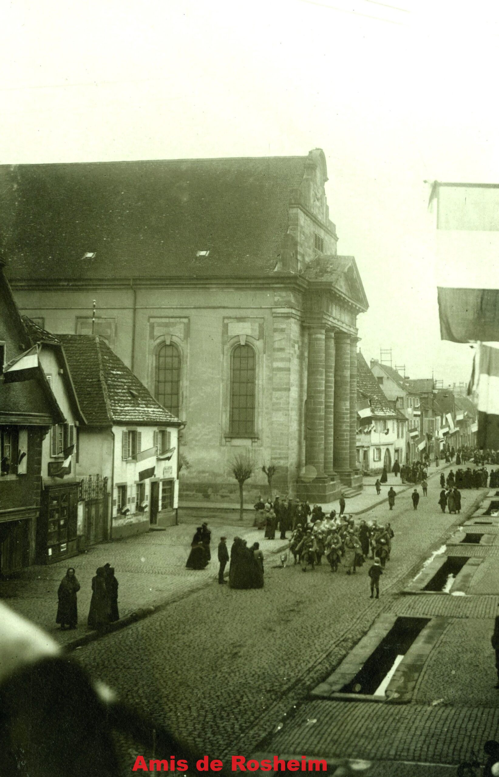 Après quatre années de guerre, au matin du 18 novembre 1918, une messe d’action de grâce est célébrée avant le départ des soldats du régiment bavarois d’infanterie qui était en cantonnement à Rosheim.