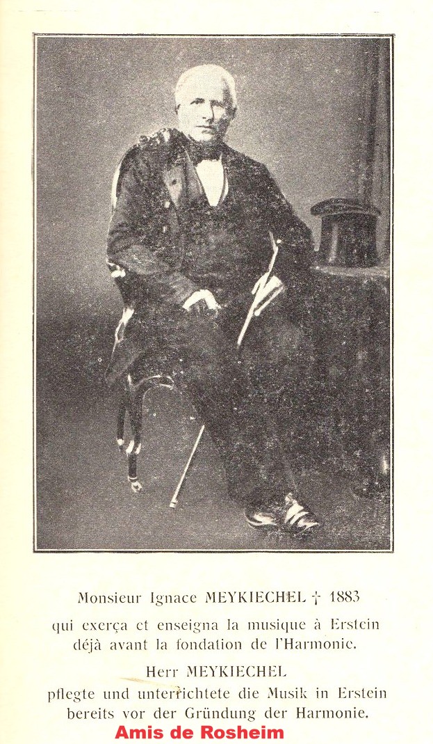 4 – M. Ignace Meykiechel (quelque fois orthographié Meybiegel ou encore Meiküchel) qui avait un fils, Joseph Meykiechel (1824-1892), célèbre chef de Musique de la Garde Républicaine de Paris, compositeur de musique … Il est peu probable que le fils, personnage important de la vie musicale parisienne, soit venu à Rosheim mais il a peut-être joué le rôle de « parrain » de la nouvelle société de musique.