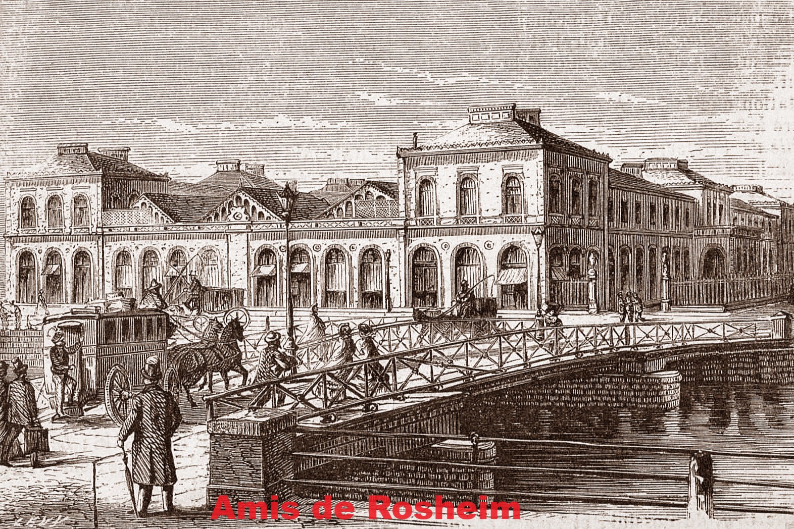 1-2 : la première gare, ou « station » du chemin de fer, se trouvait à l’entrée de Rosheim au carrefour de la route allant à Bischoffsheim, à l’endroit où a été construite l’actuelle maison de l’enfance.
