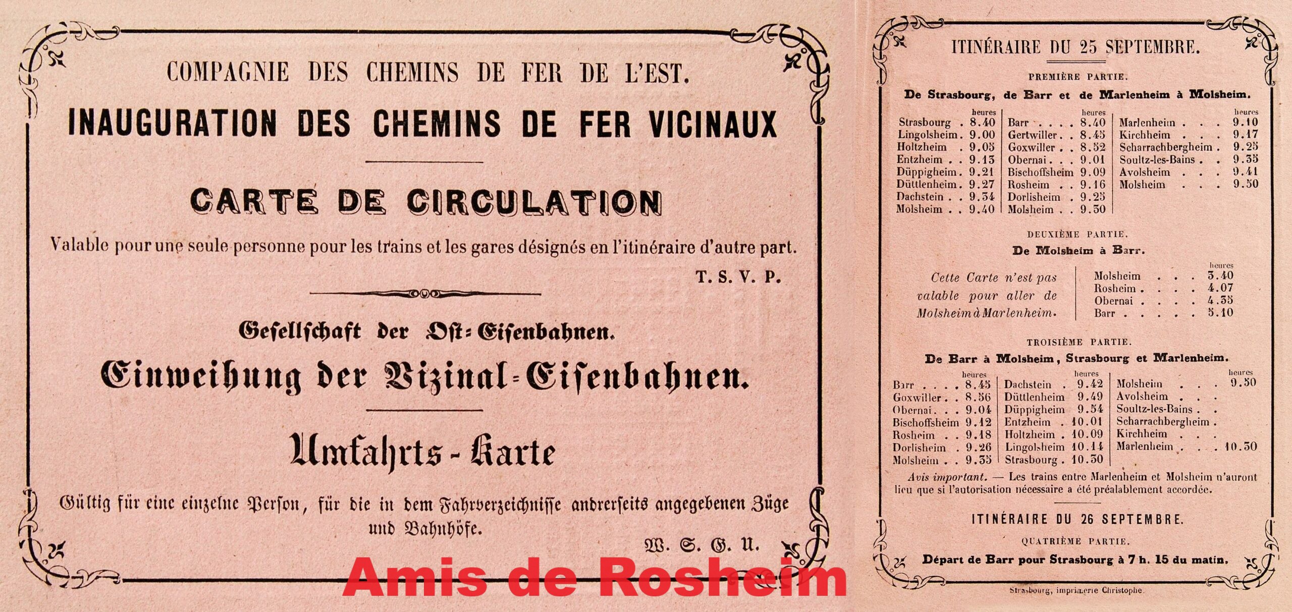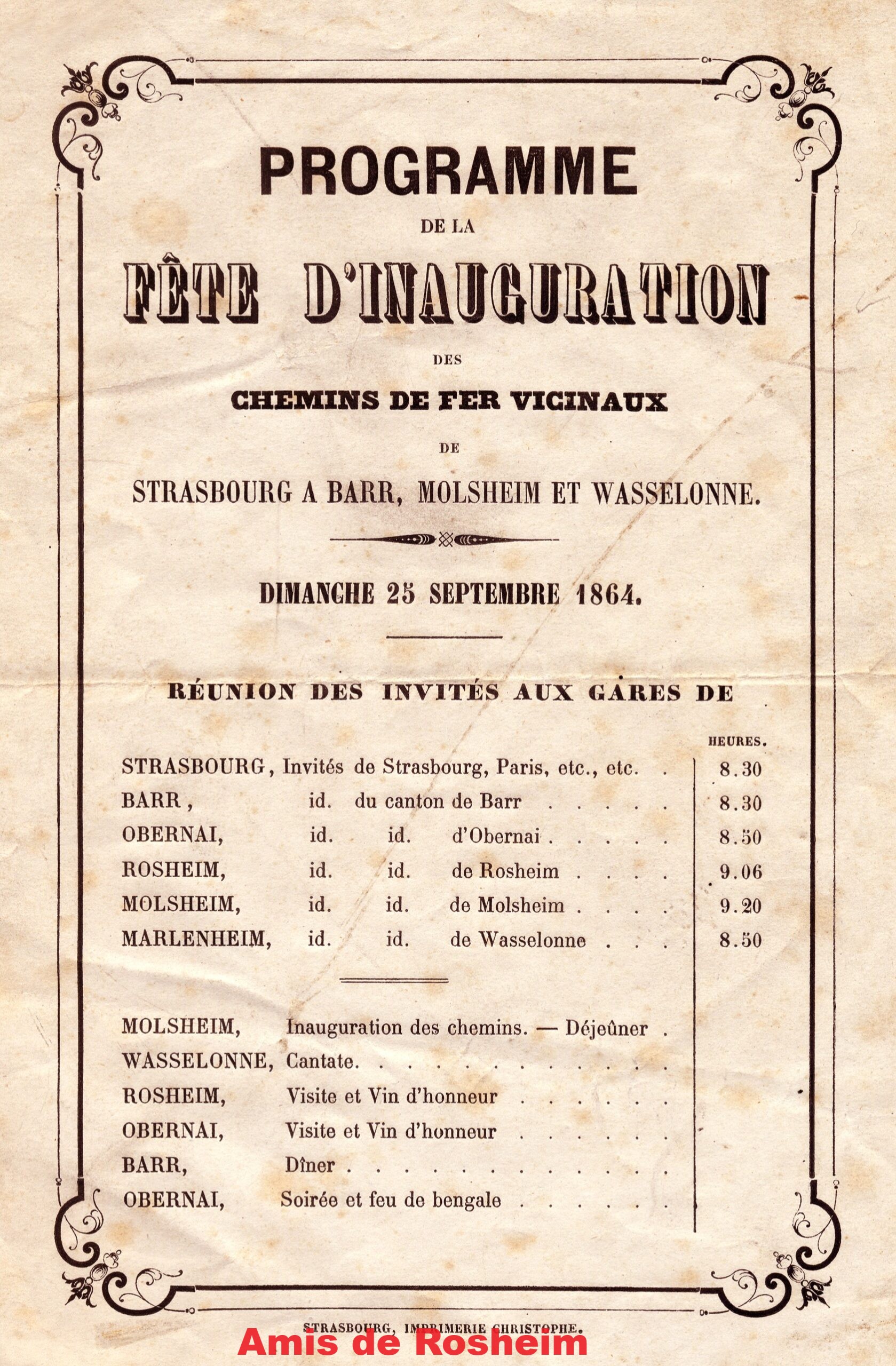 Le projet de chemin de fer vicinal n°1 bis de Strasbourg à Barr, Wasselonne et Mutzig est lancé en 1860 et inauguré en grande pompe le 25 septembre 1864 avec des discours enflammés sur les vertus du progrès, musique, banquets et autres réjouissances sur les différentes étapes de cette ligne.