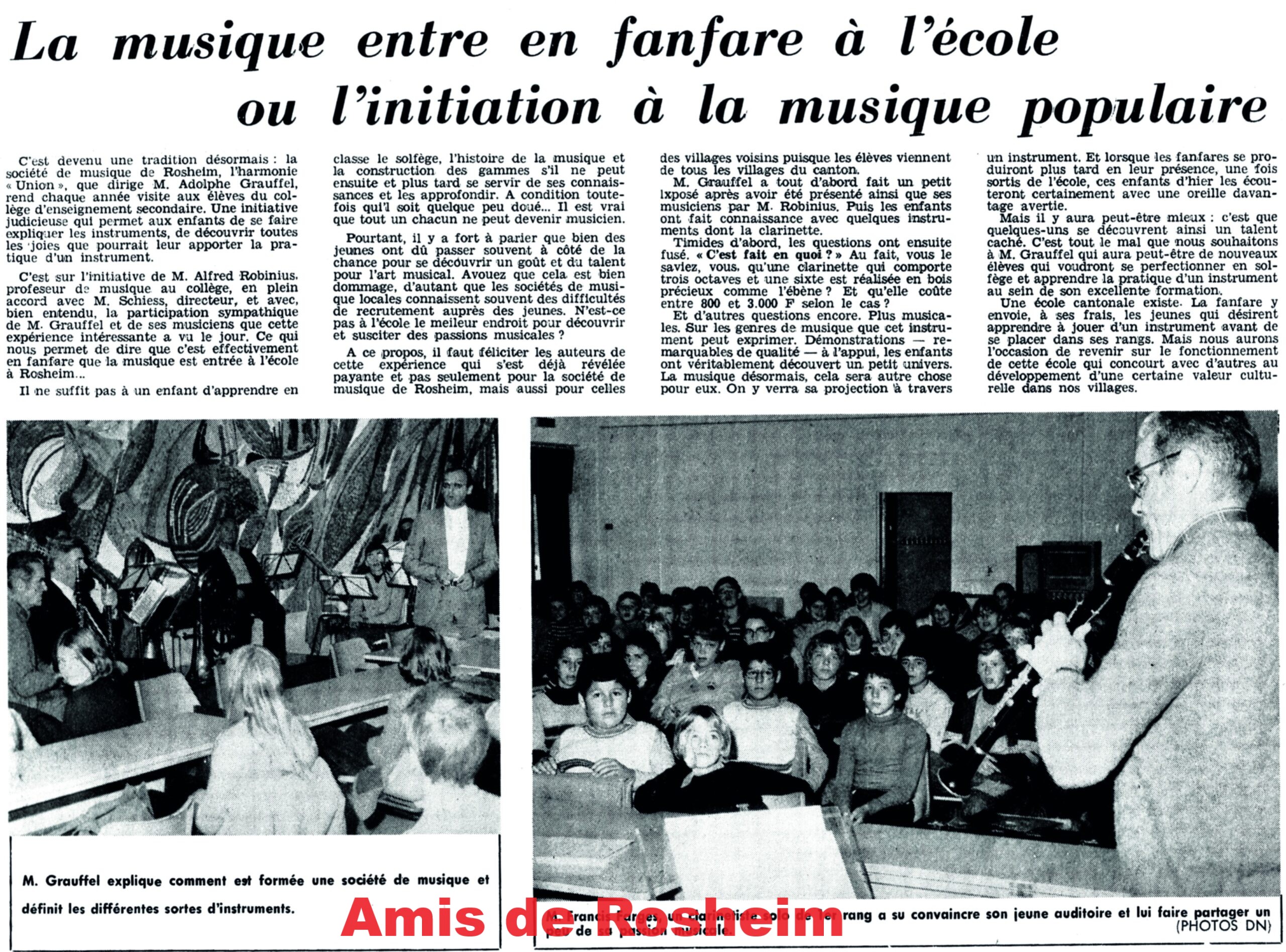3 – Des séances de sensibilisations à la musique d’ensemble sont organisées dans les écoles primaires par Adolphe Grauffel et Francis Farges.
