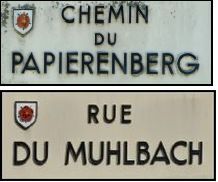 Le Muhlbach (ruisseau du moulin) est à sec, mais pas forte pluie reçoit toute l’eau du Westerberg et de Rosenwiller d’où le grand bassin de rétention créé récemment.  Toujours en direction de Rosenwiller, débouche sur la gauche le chemin du Papierenberg, voisin de la Bürck, plantée de vignes. Non loin de là, était située le moulin Langmühl, qui a vraisemblablement porté le nom de Bapiren Mühl (moulin à papier) : « Die allmendt von der Bapiren Mulen bitz uff die bürcken ».
