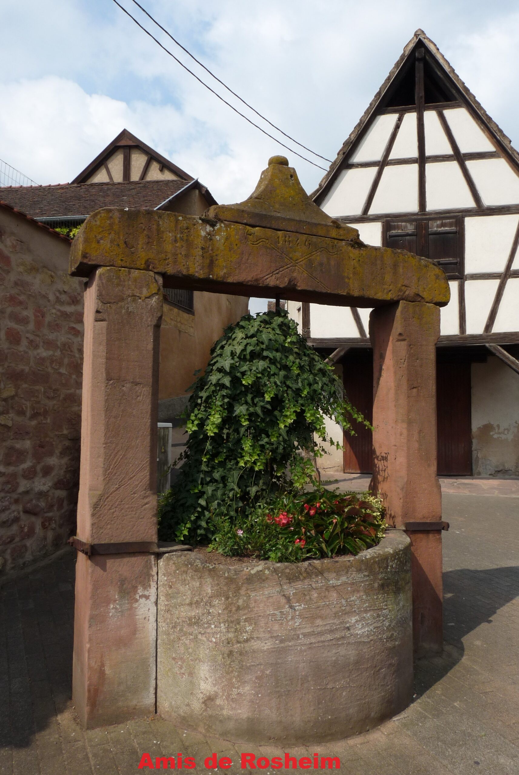 Le puits ancien situé dans la rue principale. Le linteau est orné de deux crosses d’évêque et porte la date de 1846.