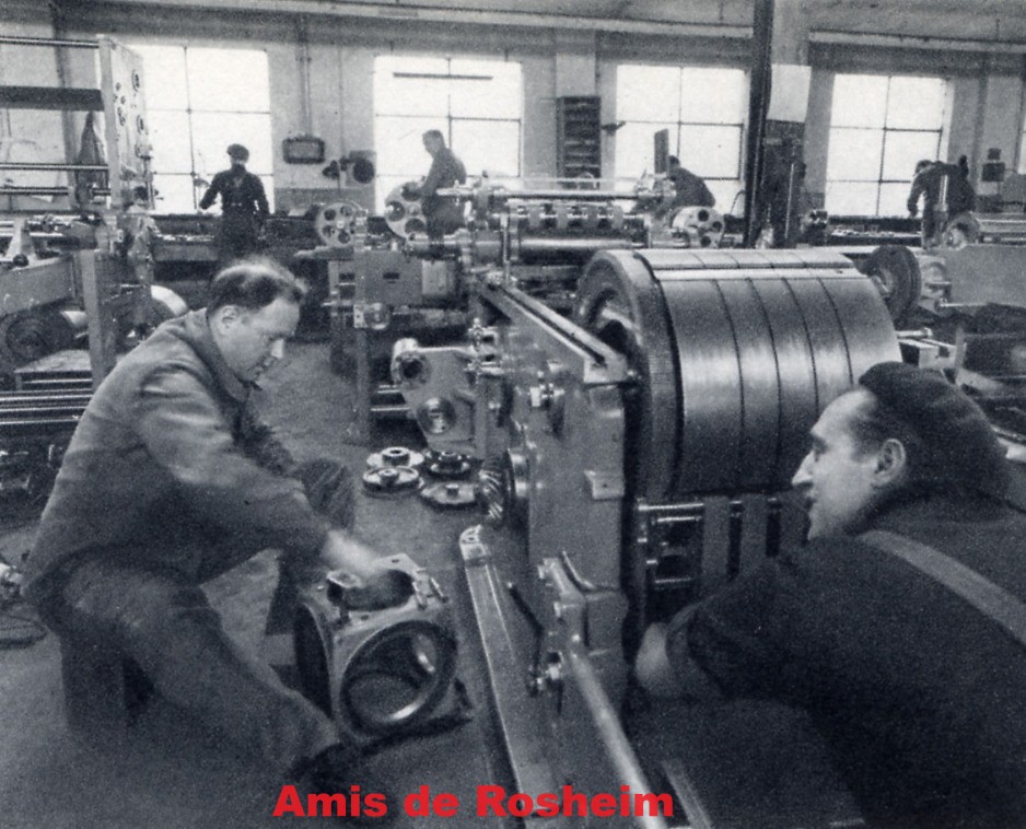 Pour l’usinage, le travail était effectué en 2 équipes : l’équipe du matin de 5h à 13h et l’équipe d’après-midi de 13h à 21h. Ces horaires étaient très arrangeants pour les « ouvriers/paysans ». Ils leur laissait une demi-journée pour les travaux des champs qui étaient quelquefois à l’origine d’épidémie en période de récolte (cerises à Bischoffsheim, vendanges à Rosheim et Rosenwiller, etc…) où l’on pouvait noter un absentéisme supérieur à la moyenne. Certains travaux d’usinage pouvaient générer des primes de rendement : un bonus si le temps passé était inférieur au temps alloué.