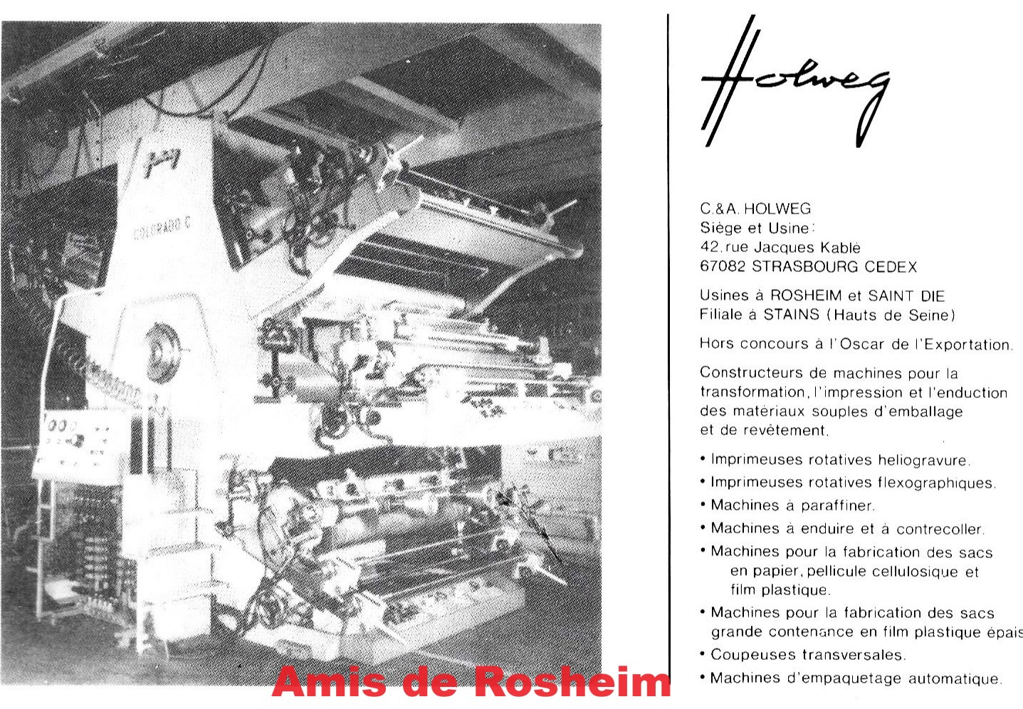 • Strasbourg, 42 rue Jacques Kablé pour le Siège, la direction, les services administratifs, les bureaux d’études, mais également un atelier de montage pour les machines d’une grande hauteur, notamment les grandes imprimeuses.