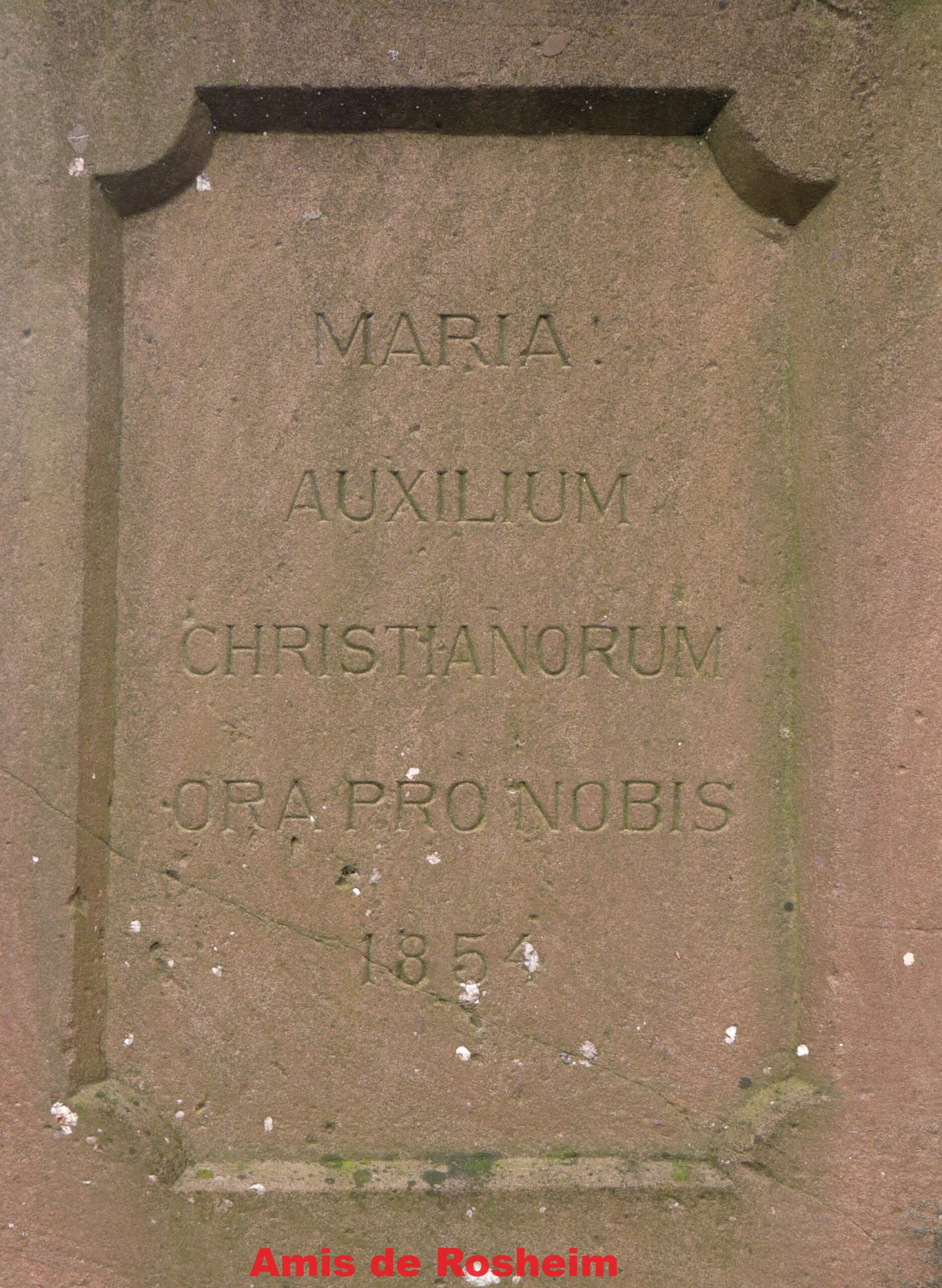 3 – Sur le socle figure une inscription : « Maria ! auxilium christianorum ora pro nobis » et la date 1854. (Marie auxiliatrice des chrétiens prie pour nous).