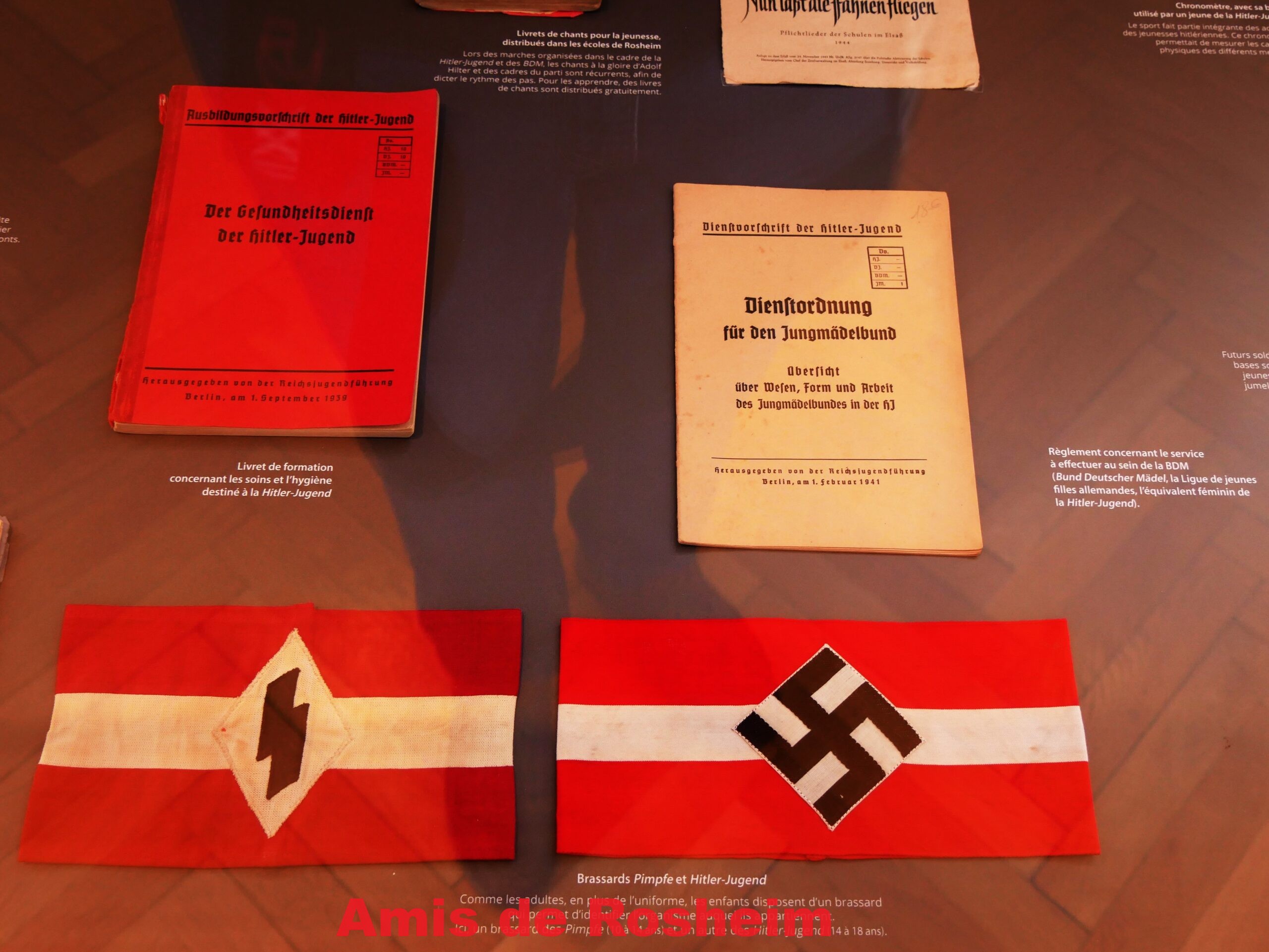 3 – Brassards des Pimpfe (10 à 14 ans) et de la Hitler-Jugend (14 à 18 ans). Comme les adultes, en plus de l’uniforme les enfants disposent d’un brassard permettant d’identifier l’organisme auquel ils appartiennent.