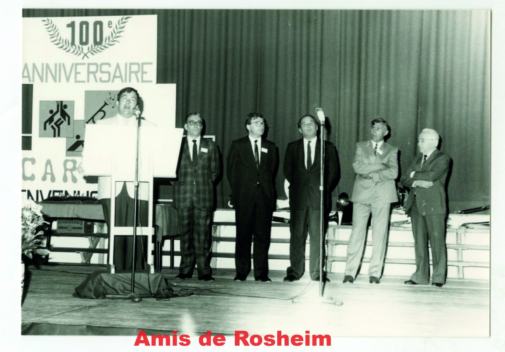 4 – Le président du Cercle, Jean-Paul Aubry, accueille les personnalités présentes lors des festivités du Centenaire avec de Gauche à droite : Jean Paul Aubry, Clément Schertzinger, Alphonse Troestler, Jean-Marie Caro, Antoine Georgler et Robert Ott.
