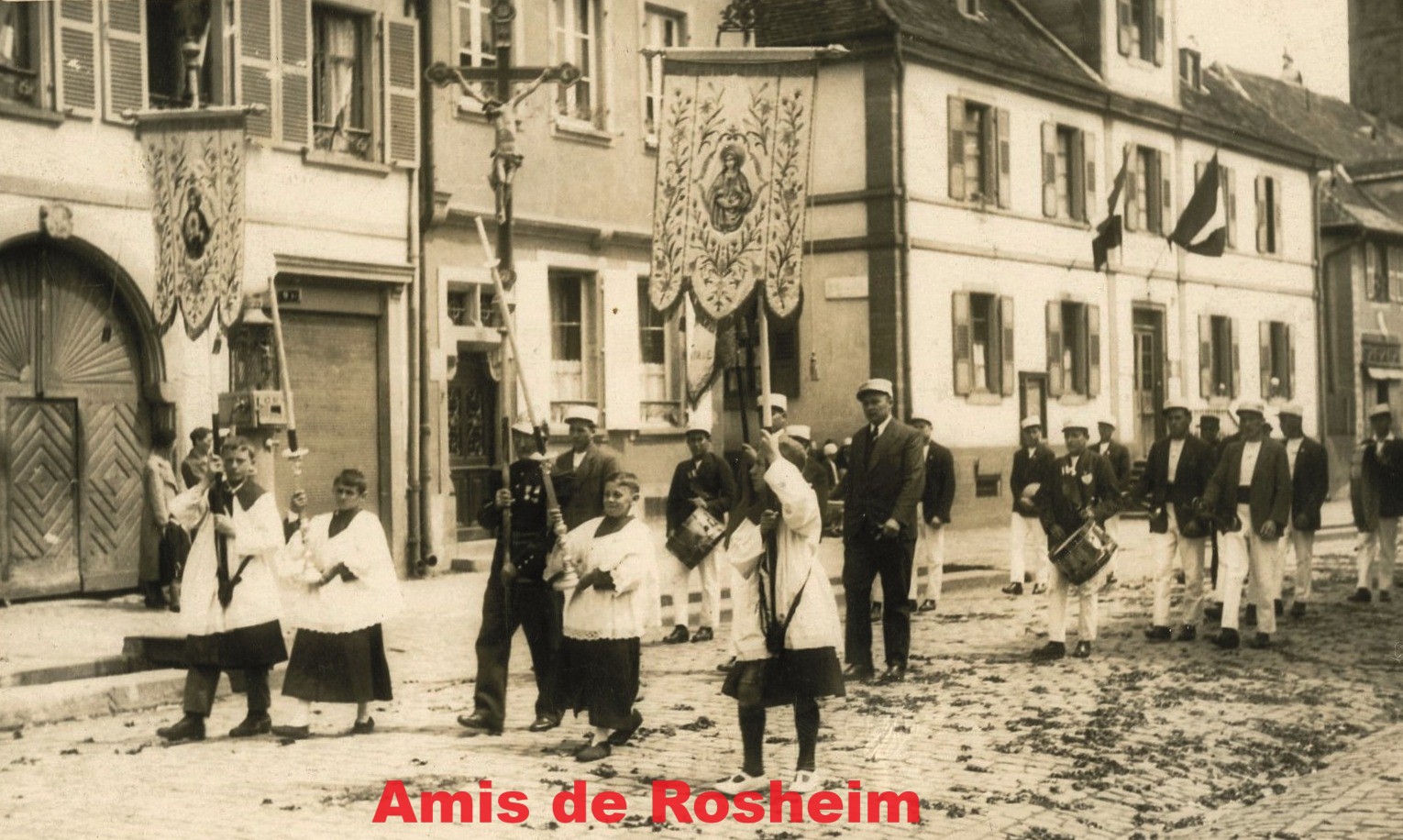4 – Procession de la Fête-Dieu vers 1930, avec la participation traditionnelle du Cercle.