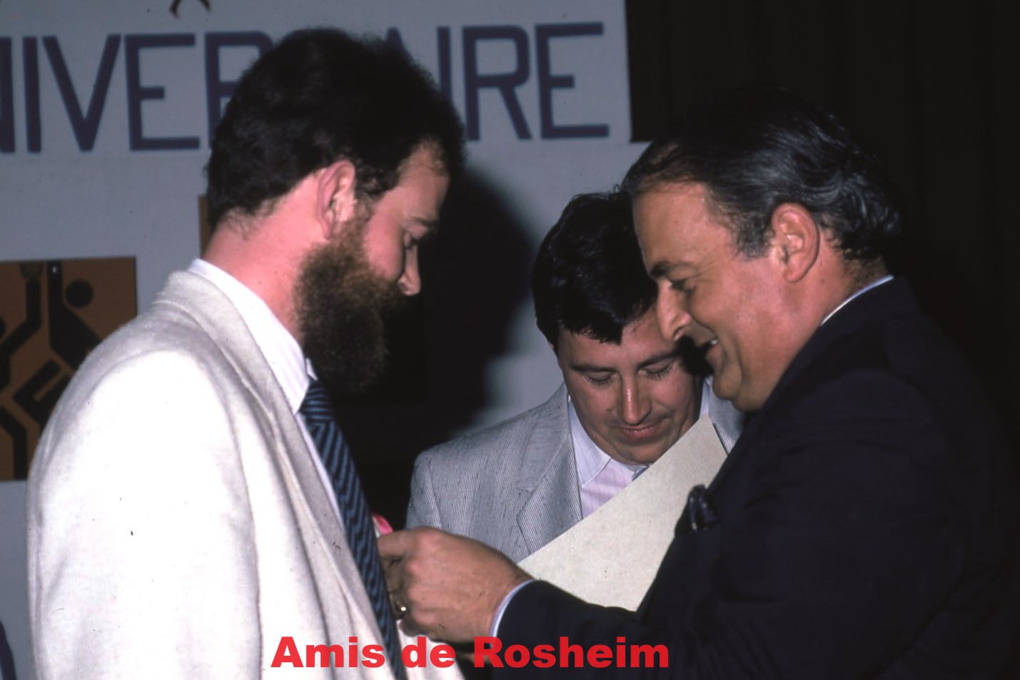 6 – La médaille du centenaire du Cercle est remise à Jean Claude Kientzi par le député Jean-Marie Caro en 1986.