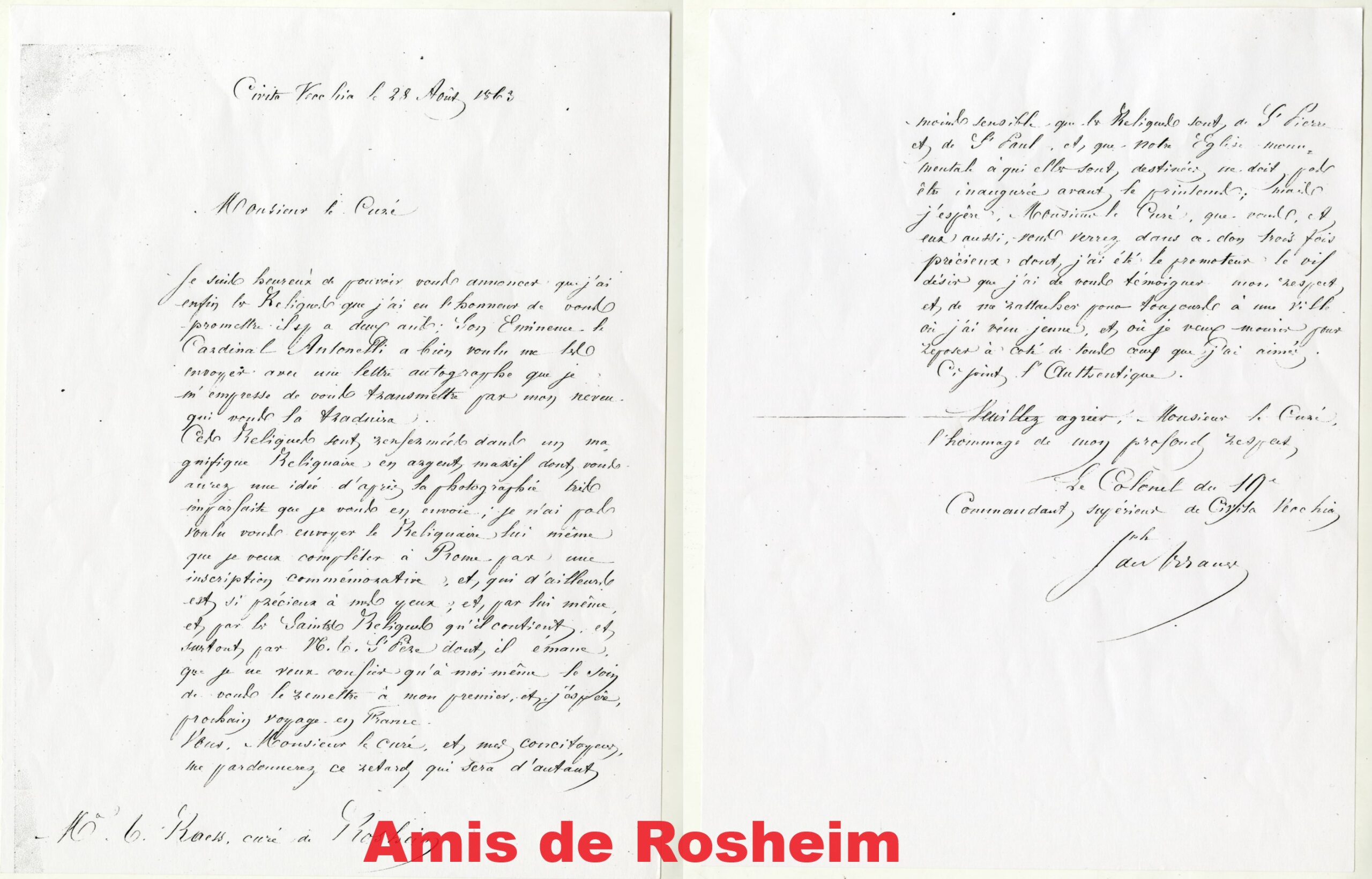 Mais la cure de Rosheim restera un fief de la famille Raess. Lui succéderont le secrétaire particulier de Mgr André Raess qui est aussi son neveu, l’abbé François-Xavier Koenig qui sera en poste à Rosheim de 1864 à 1868. Son installation fut très solennelle car accompagnée de la translation des reliques de Saints-Pierre-et-Paul dont le pape Pie IX avait gratifié la commune, sur la demande du colonel de Brauer.