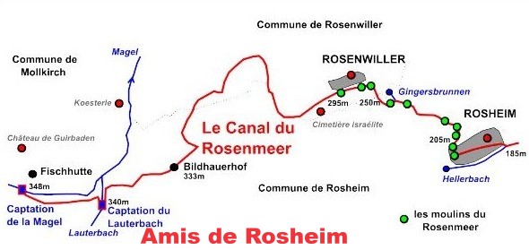 En l’absence de source importante dans les vallons voisins de Rosheim, il faut chercher plus haut une rivière avec un débit suffisant. La Magel semble la solution la meilleure, mais elle coule à Mollkirch pour rejoindre la Bruche, plus au Nord. Il faut la capter plus en amont, à hauteur de la Fischhutte, lui faire contourner les collines de l’Eichwald, retomber sur Rosenwiller, avant de rejoindre Rosheim.