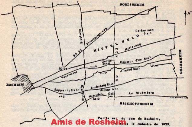 2 – Situation du Bruderberg  dans la partie Est du ban de Rosheim d’après le cadastre de 1829.