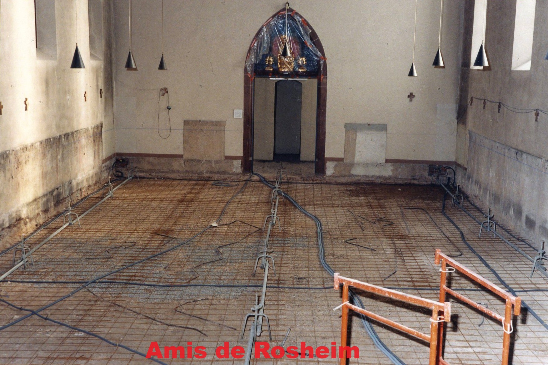 2 – Préparation de la chape de la chapelle en vue de la mise en œuvre du chauffage au sol.