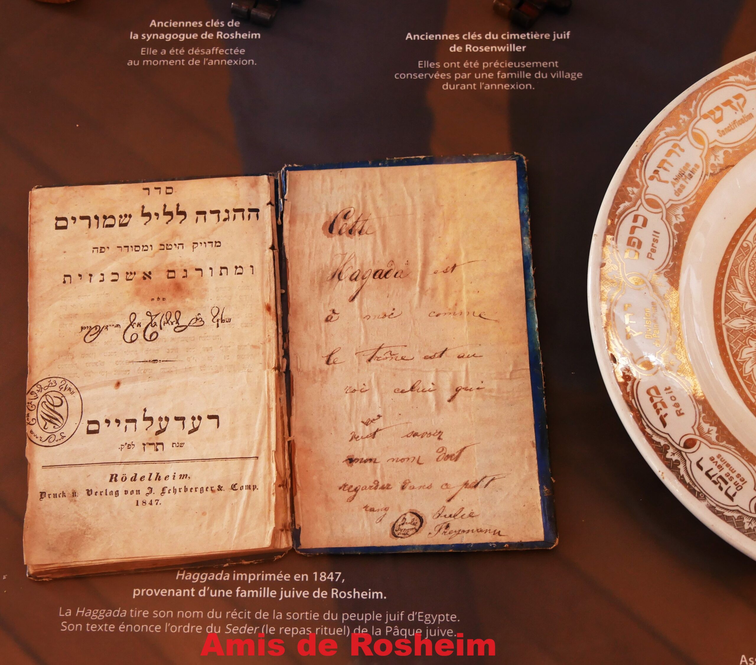 3 – Une Haggada imprimée en 1847 provenant d’une famille juive de Rosheim. La Haggada tire son nom du récit de la sortie du peuple Juif d’Egypte.