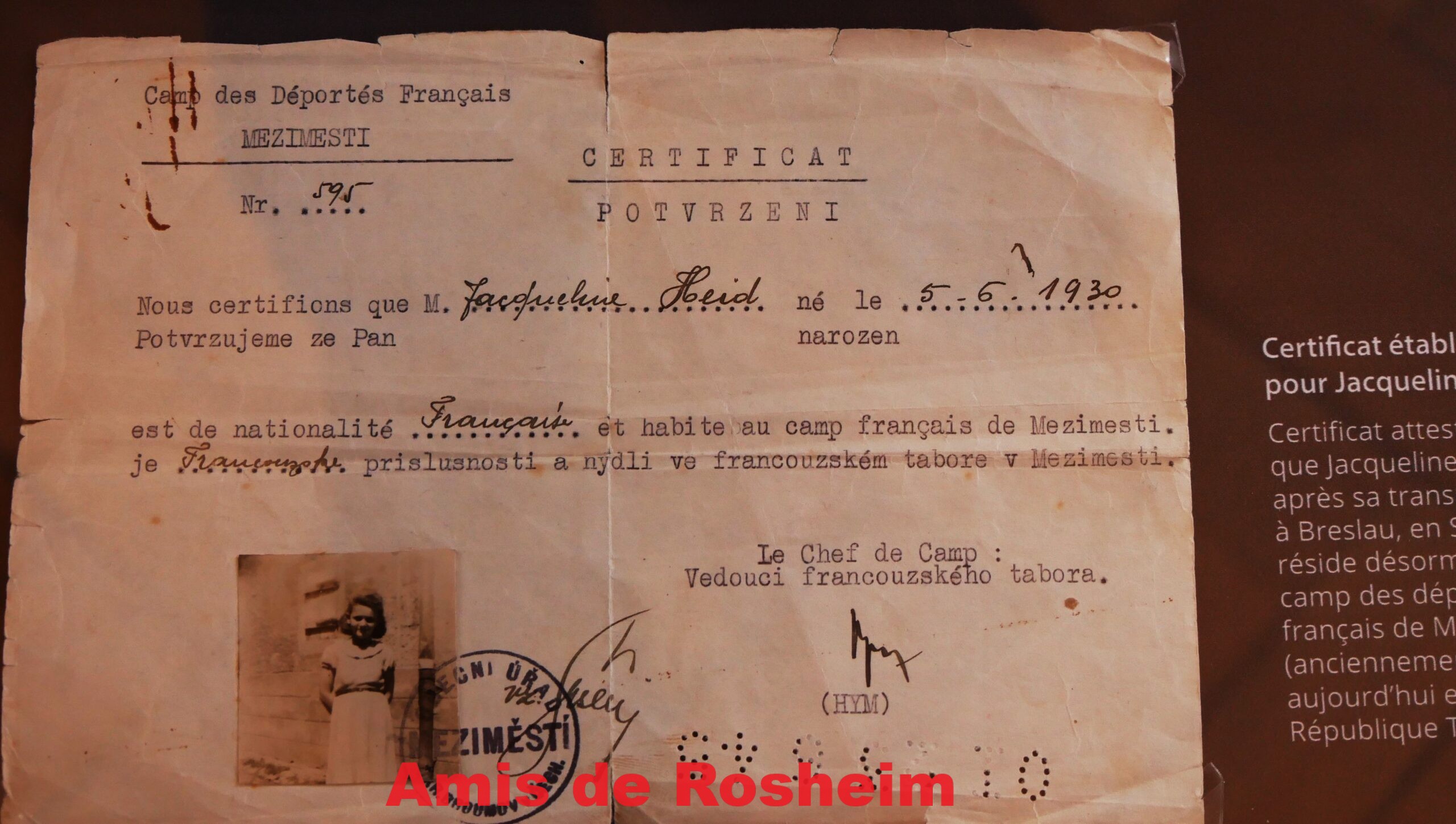 8 – Certificat attestant que Jacqueline Heid, après sa transplantation à Breslau, réside désormais au camp français de Mezimesti (anciennement Halberstadt), aujourd’hui en République Tchèque, près de la frontière polonaise.