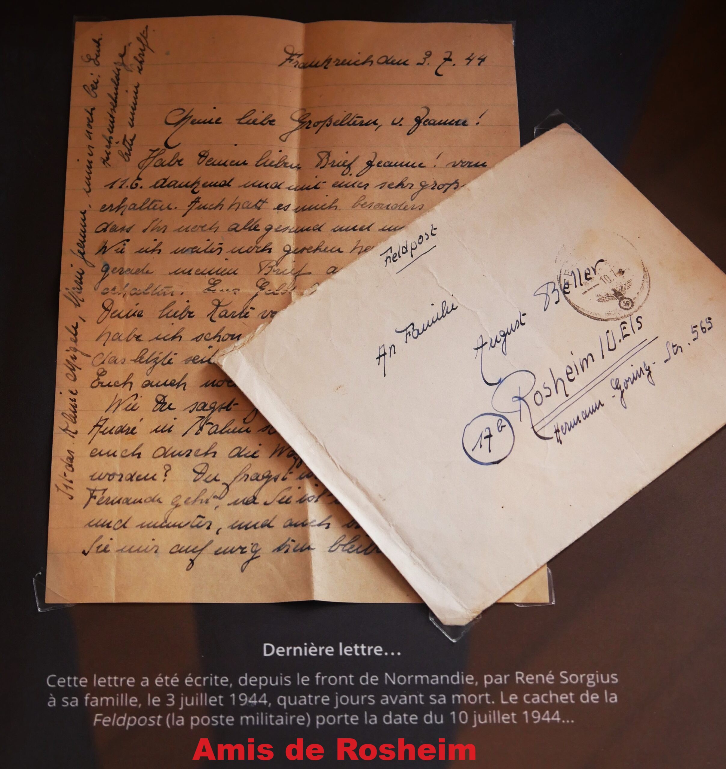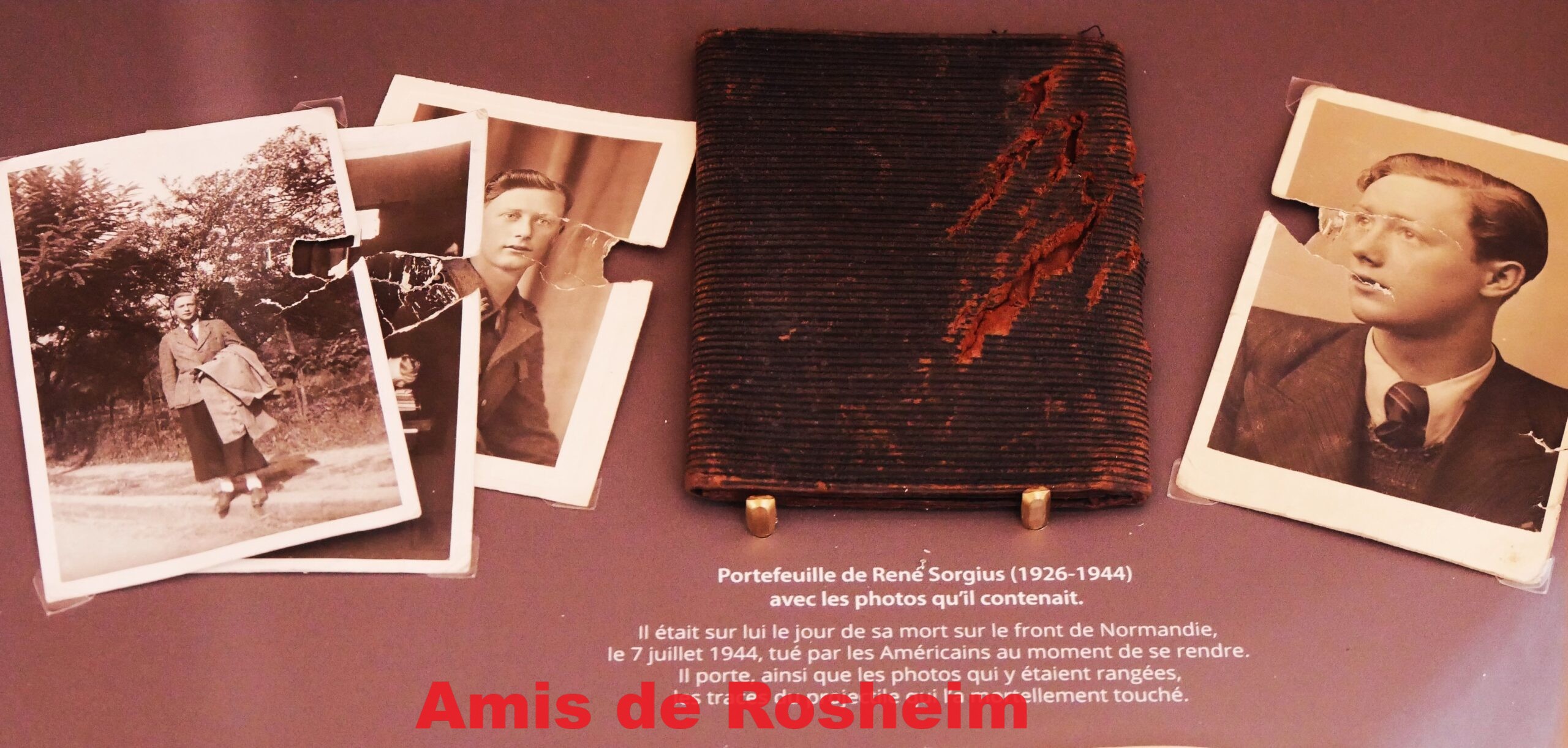 3 – Le portefeuille, seul reste du destin tragique de René SORGIUS (17 février 1926 – 7 juillet 1944). Comme la moitié de ses camarades de la classe 1926, René est incorporé d’office dans la Waffen SS en février 1944, puis se retrouve en Normandie où la bataille fait rage aux lendemain du débarquement du 6 juin 1944. Souhaitant, dès son arrivée au front, se rendre pour mettre fin à son calvaire, René Sorgius ainsi que plusieurs de ses camarades alsaciens décident, le 7 juillet 1944, de ne pas obéir à un ordre de repli afin d’attendre l’arrivée des Américains. Malheureusement, ils sont tués par ces derniers.