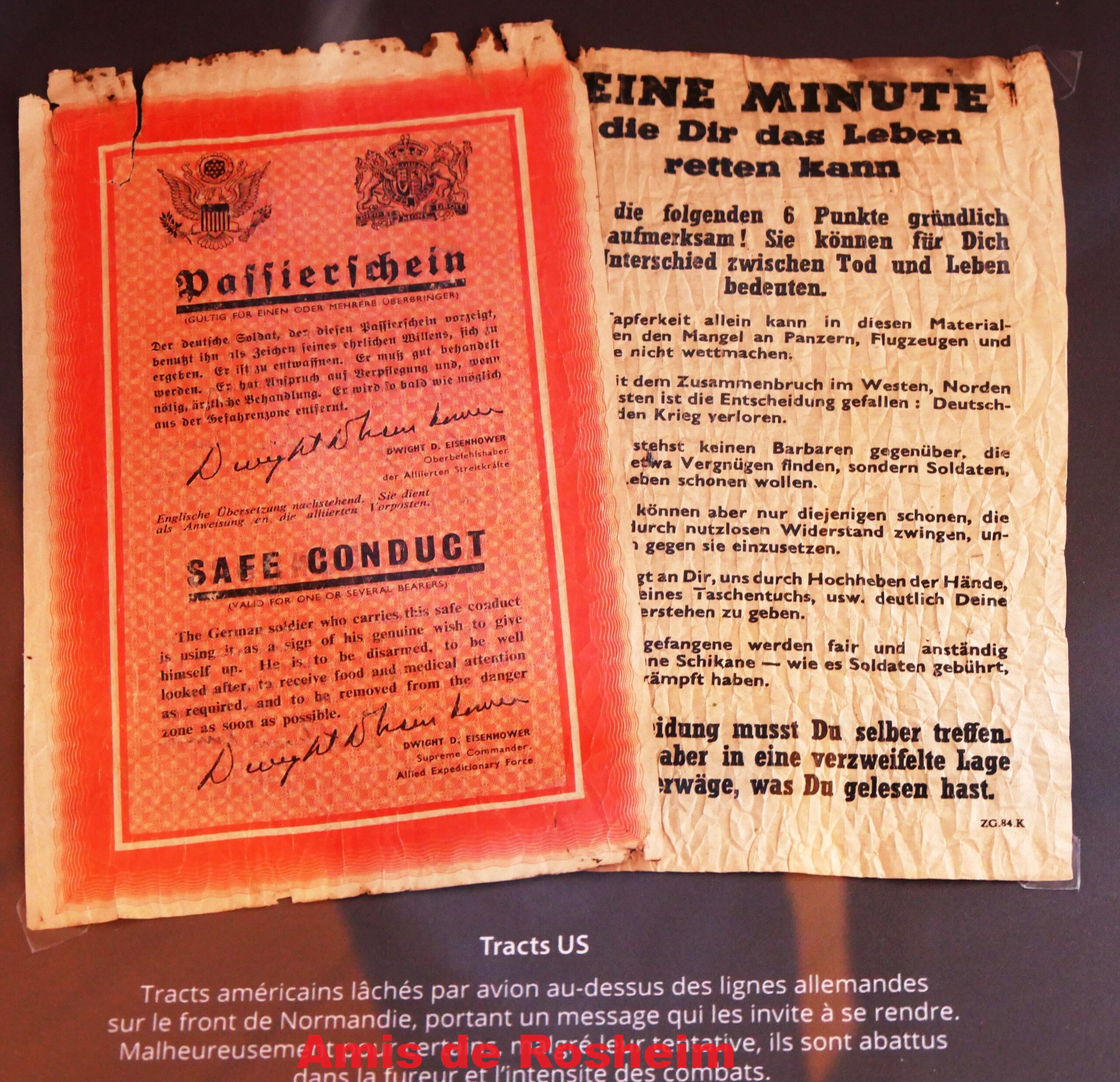 2 – Tract, sous forme de laissez-passer, lancé par les Américains sur les lignes allemandes en Normandie, invitant les soldats allemands à se rendre.
