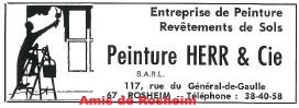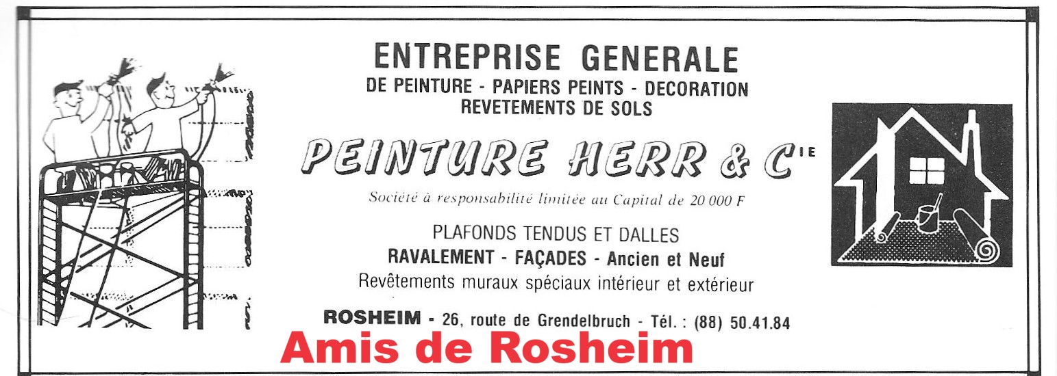 Aux travaux classiques de la peinture en bâtiment, revêtements de sols, isolation extérieure se sont ajouté quelques travaux spécifiques comme la peinture en lettres. L’entreprise Herr a peint des enseignes de commerces, la dernière étant celle de la boucherie Willer, aujourd’hui disparue, et de banderoles annonçant les prochaines