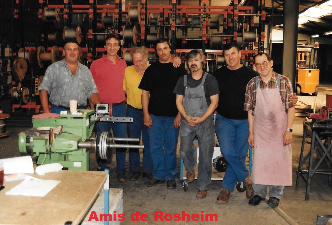 3 – Dans les ateliers de la rue du Général de Brauer. On reconnaît Wantz Gérard, Karner Willy, Kubler Joseph, Arnold Gérard, Loeber Denis, Furst Hubert…