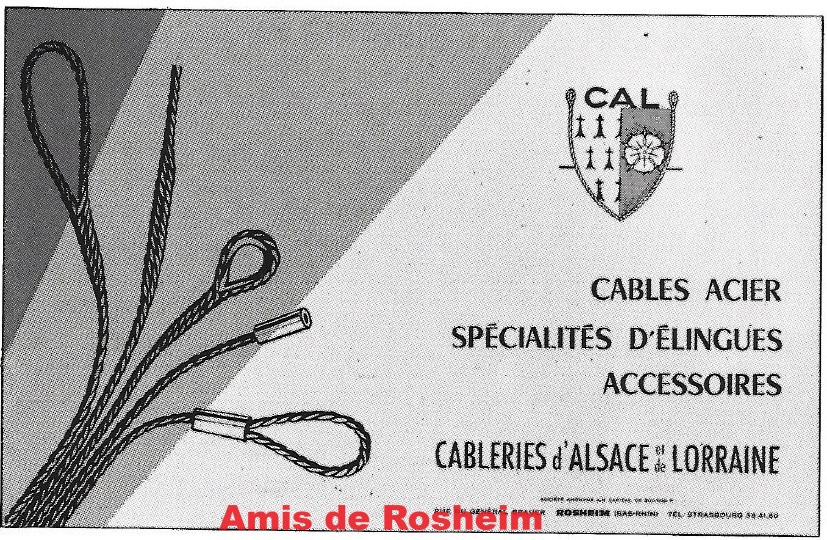 En 1960, M Cote, un jeune homme, plus aventurier que câbleur, rachète l’ancien site de la SAPIT au bout de la rue du général De Brauer. Les Câbleries d’Alsace-Lorraine sont nées. Auparavant, un atelier de transformation de câbles d’acier existait dans un ancien corps de ferme à Vendenheim où des anciens tisserands de Rosheim sont allés apprendre le travail de fabrication d’élingues. Le tout est alors transféré à Rosheim et la production démarre pleinement en janvier 1961.
