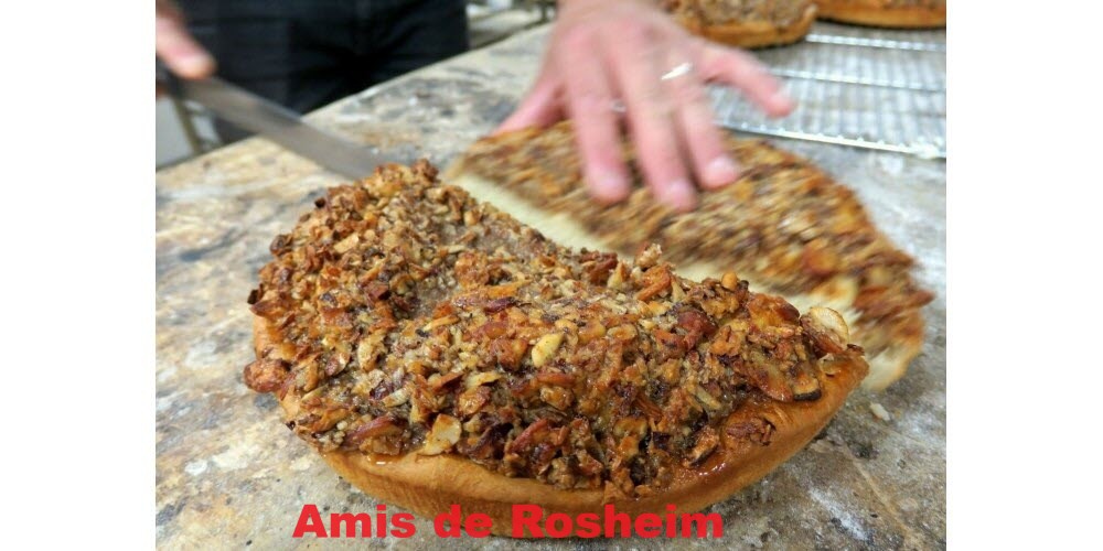 Une spécialité incontestée de la boulangerie Rohmer est le Ropfkueche, la fameuse viennoiserie aux noix et aux amandes qui fait la renommée de Rosheim.