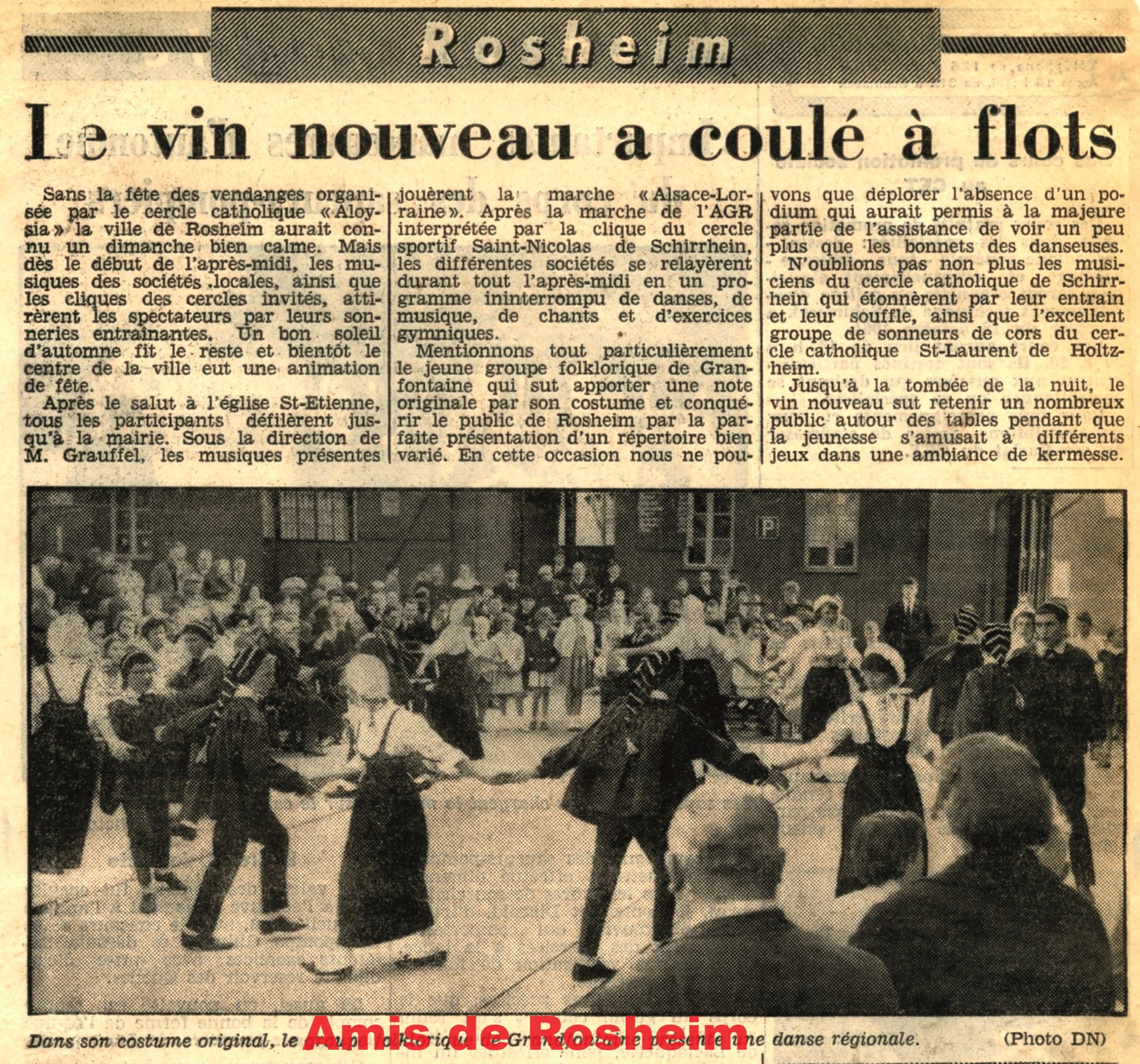 3 – La fête des vendanges du dimanche 25 octobre 1964 dans un article des DNA.