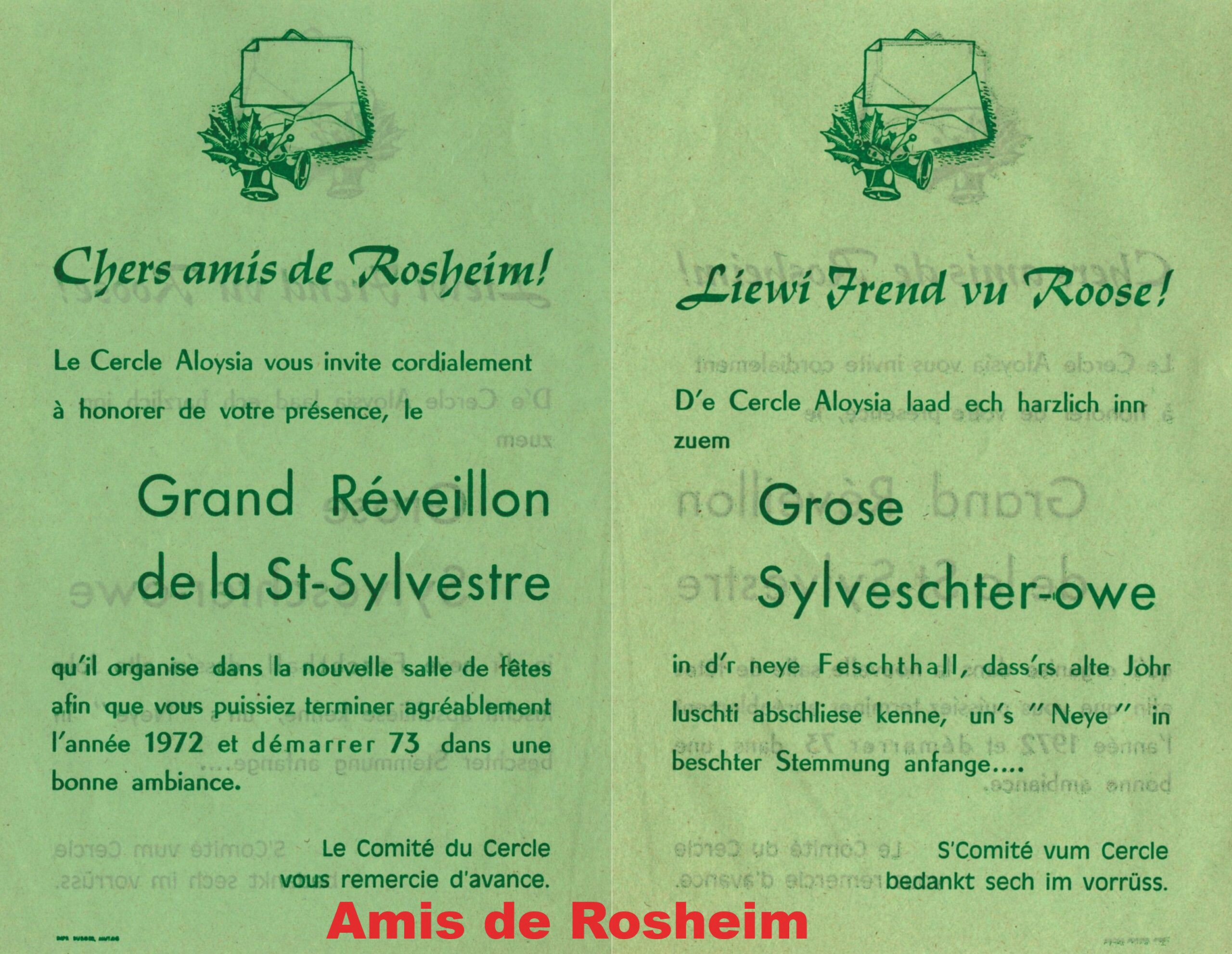 6 – Tract bilingue édité à l’occasion du premier « Grand Réveillon de la St-Sylvestre » organisé par le Cercle le 31 décembre 1972 dans la nouvelle salle des fêtes, avant même son inauguration officielle le 6 mai 1973.
