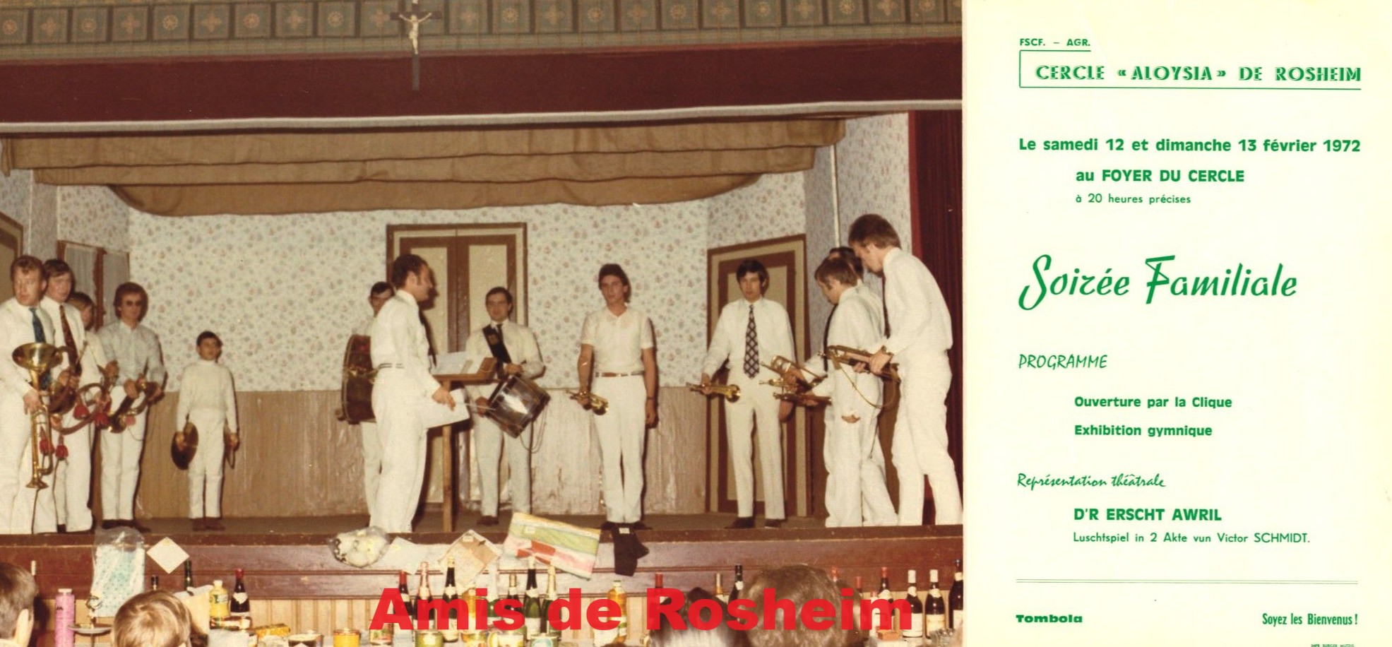 4 – La Soirée familiale de février 1972, la dernière organisée dans la salle du Foyer paroissial, la musique était dirigée par Jean-Claude Eber.