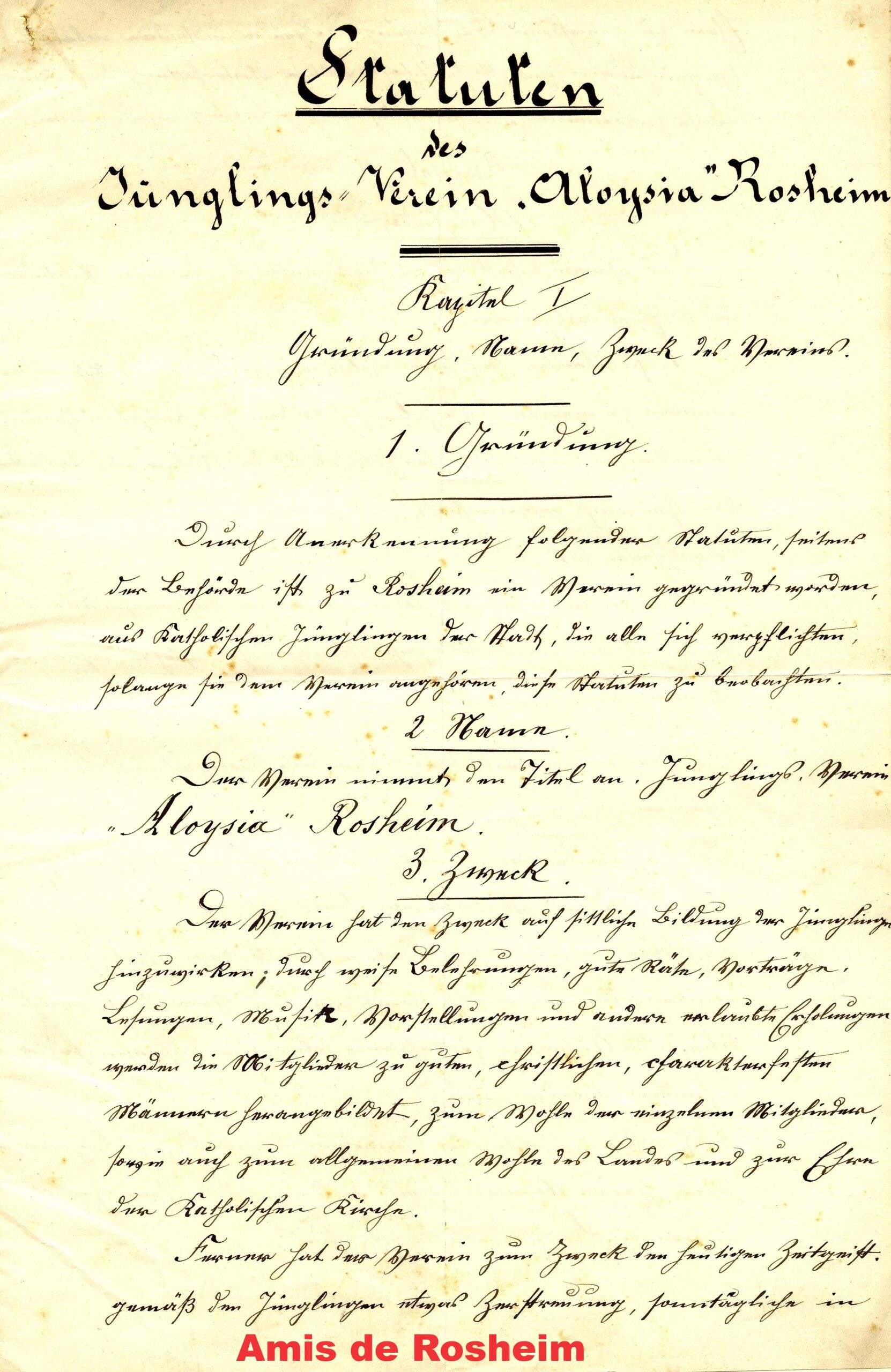 Par agrément des autorités du Reichsland, le 10 août 1893, la société « Katolischer Jünglingsverein von Rosheim » est officiellement reconnue, et rejoint ce type d’association qui n’existait jusque là que dans les grandes villes d’Alsace. Son effectif passe rapidement à une soixantaine de membres.