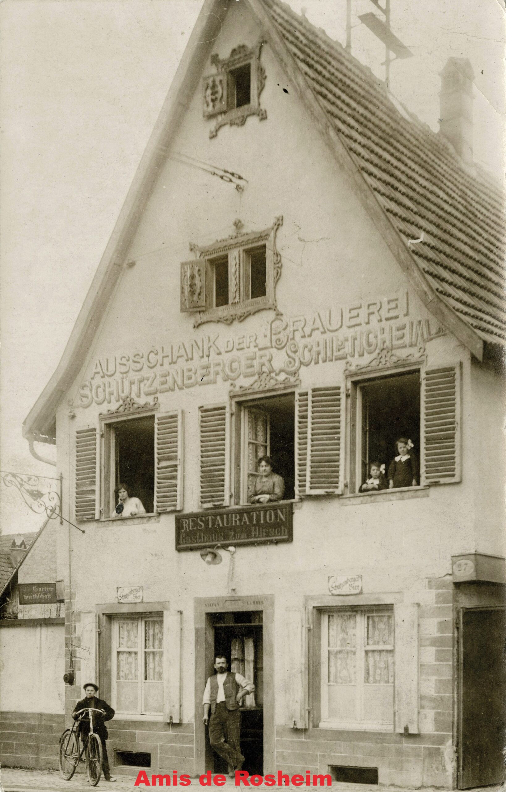 5. Le restaurant de Charles Beyer était déjà appelé « Zum Hirsch » (Au Cerf) en 1905. Il est devenu « l’Auberge du Cerf » toujours en activité. En 1925 les locaux ont été agrandis par l’adjonction d’une nouvelle maison sur l’emplacement du jardin. L’auberge a été exploitée successivement par la famille Lammer, par André Clar, par la famille Eber qui a su mettre en valeur le colombage du bâtiment Renaissance et actuellement, elle a été reprise par un jeune couple.
