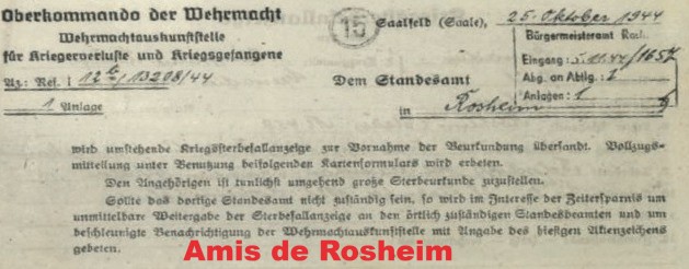 au service de l’état-civil de la Ville de Rosheim le 25 octobre 1944.