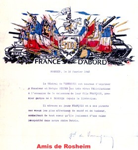 Dans la nuit du 16 au 17 janvier, Madame Steyer éprouva les premières douleurs de l’enfantement, le secteur étant sous contrôle de l’armée, c’est le Chef d’Etat -Major du Général de Vernejoul, le Colonel d’Auvigny, qui l’accompagna à l’hôpital local. Le petit François est né, et le colonel d’Auvigny devint son parrain. Le Général de Vernejoul a adressé une lettre de félicitation aux parents Steyer.