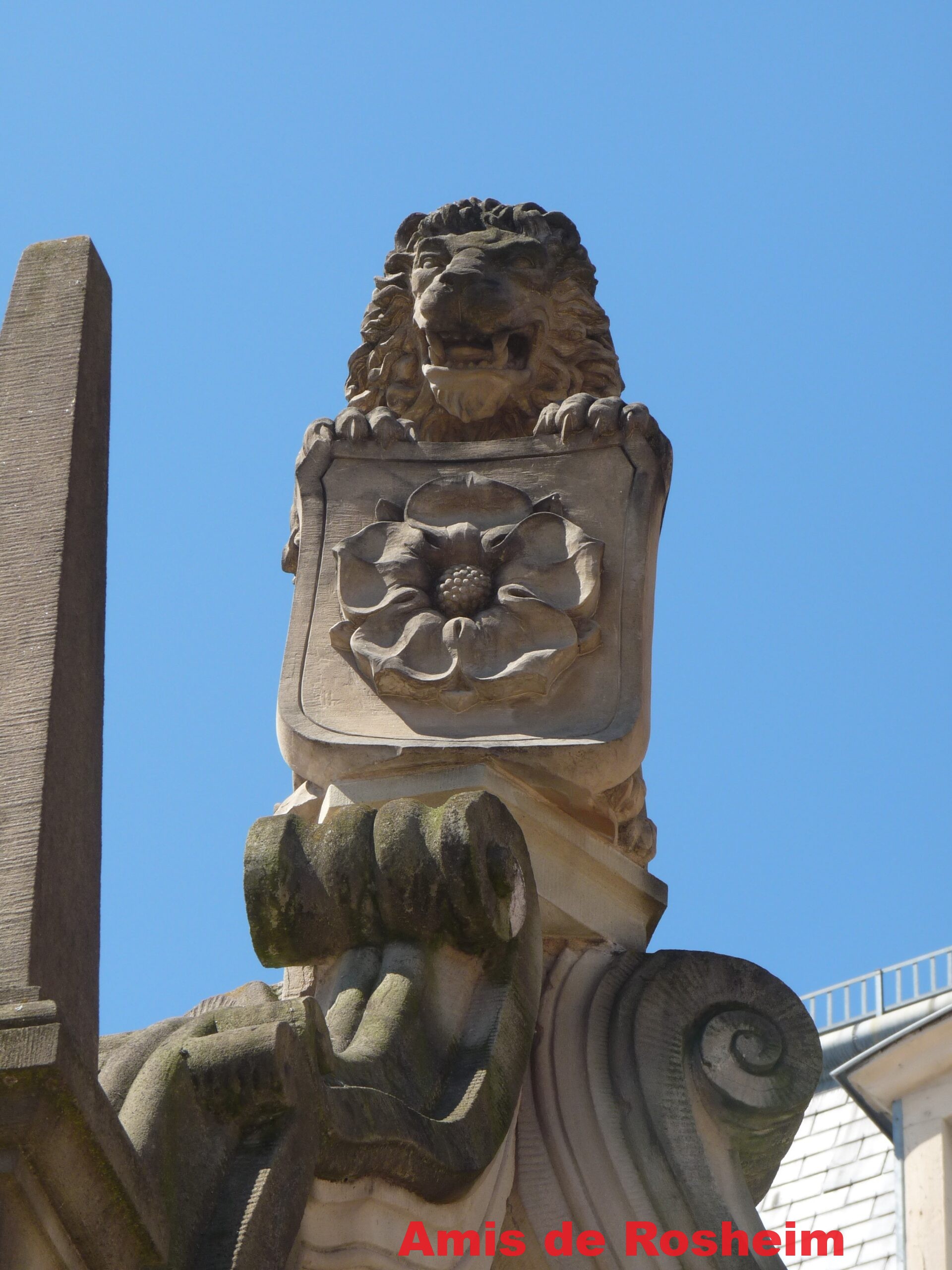 Le couronnement a été modifié en 2001 par l’ajout du lion portant les armes de Rosheim.