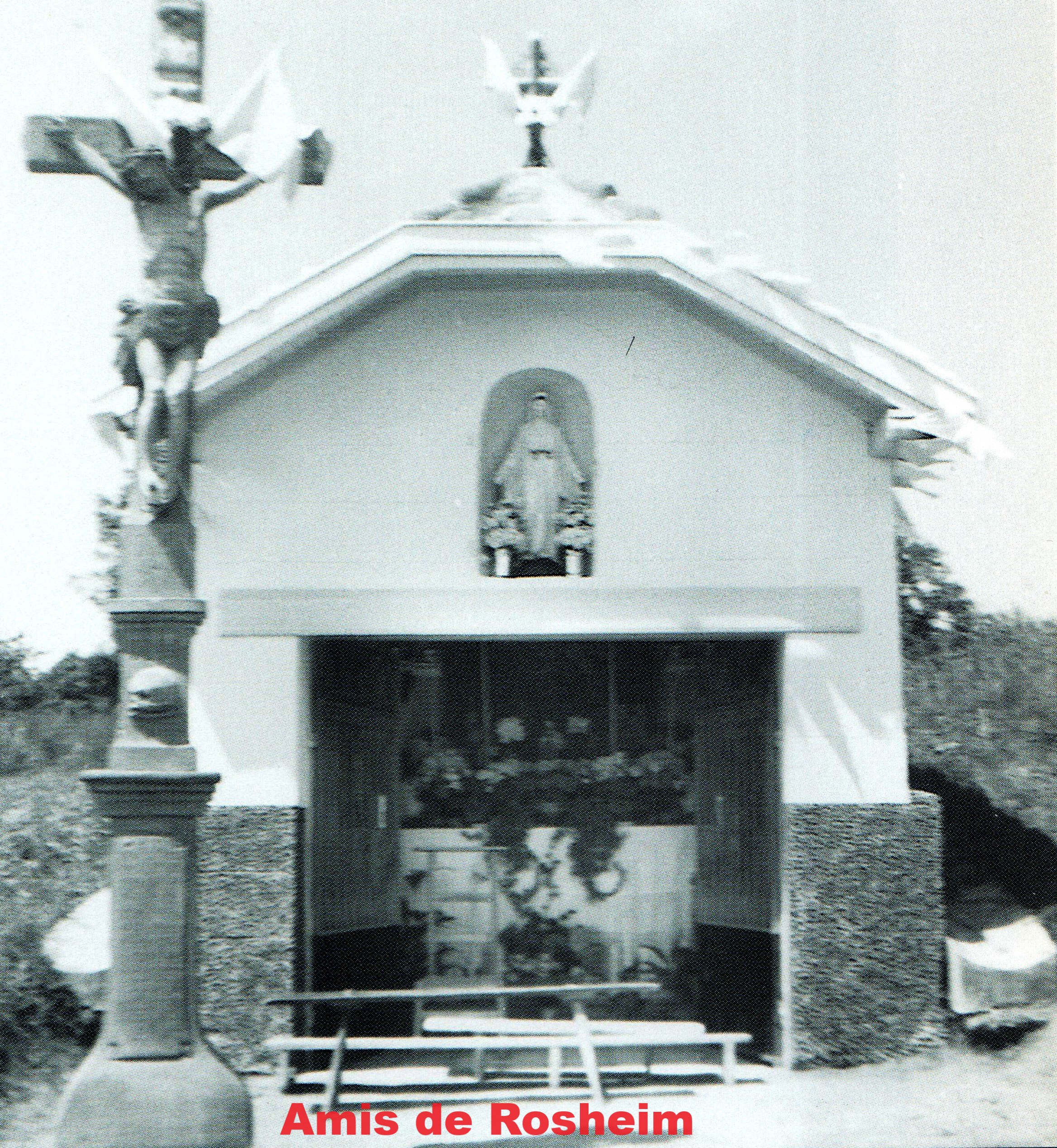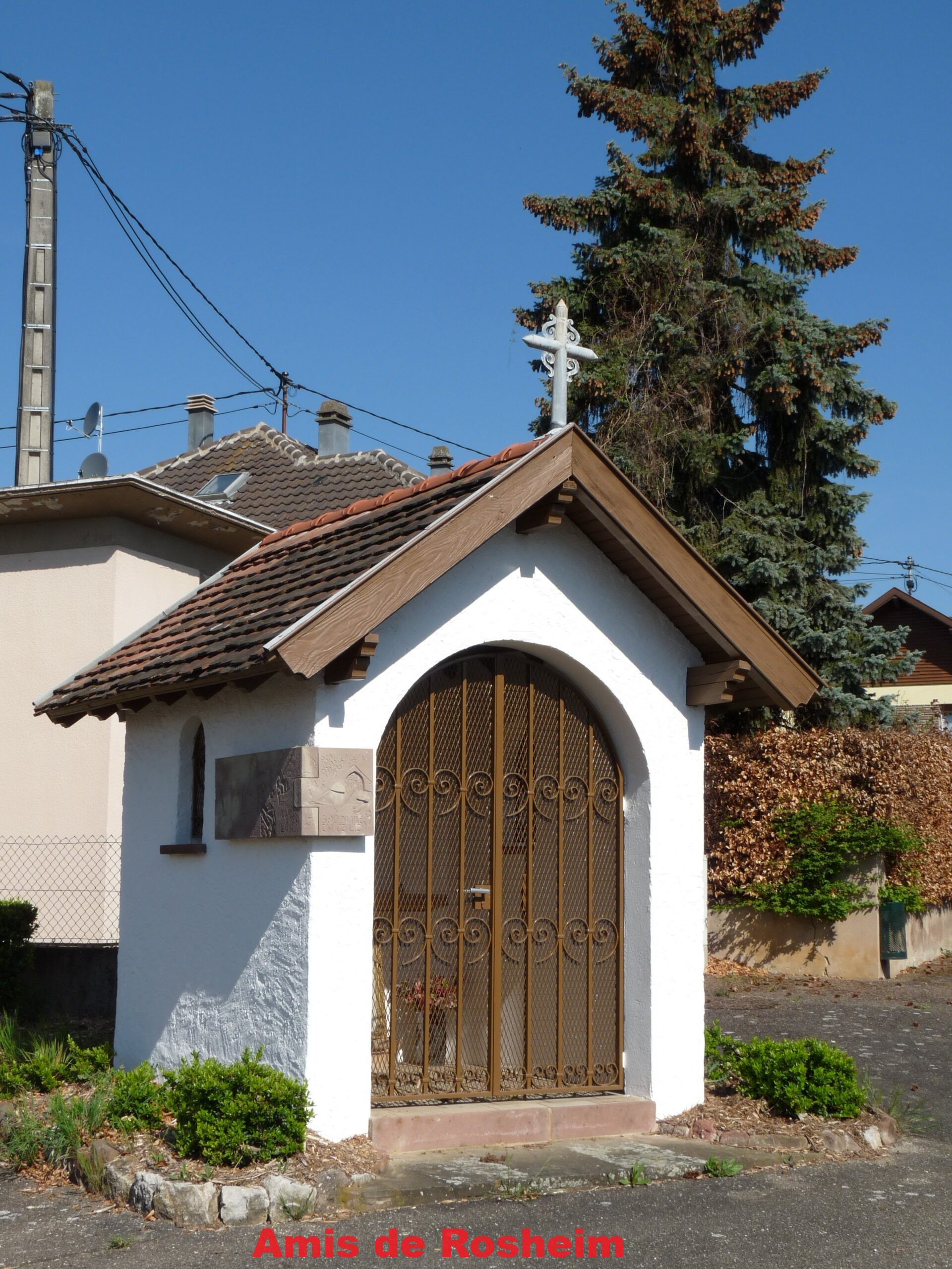 2 – la petite chapelle légèrement en retrait de la Rue de Molsheim construite après la démolition en 1975 de la chapelle de la Trinité qui se trouvait là déjà mentionnée en 1536.