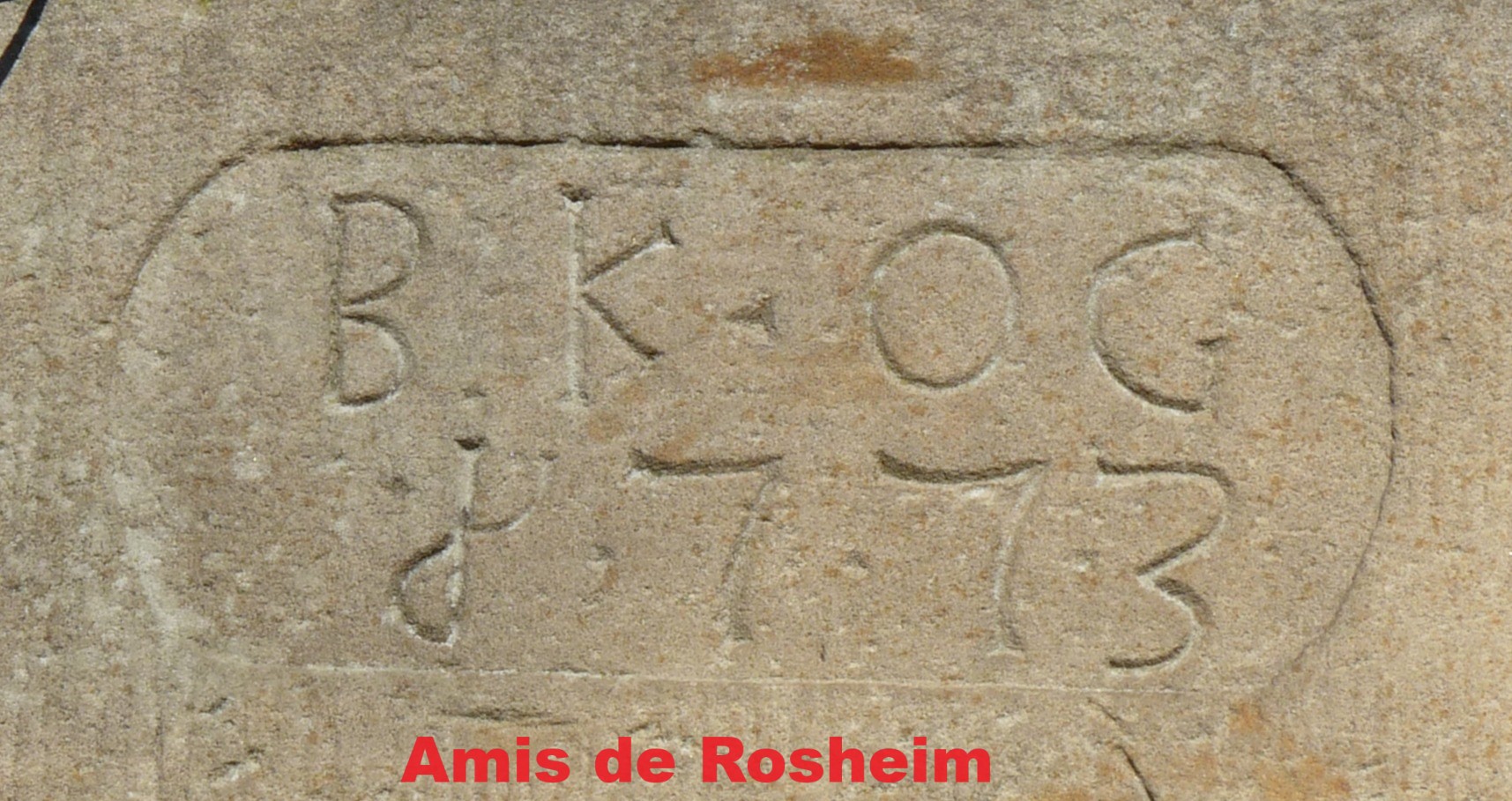 6 – Le linteau du portail piéton du numéro 3 portant la date de 1773 ainsi que les initiales BK-OG.