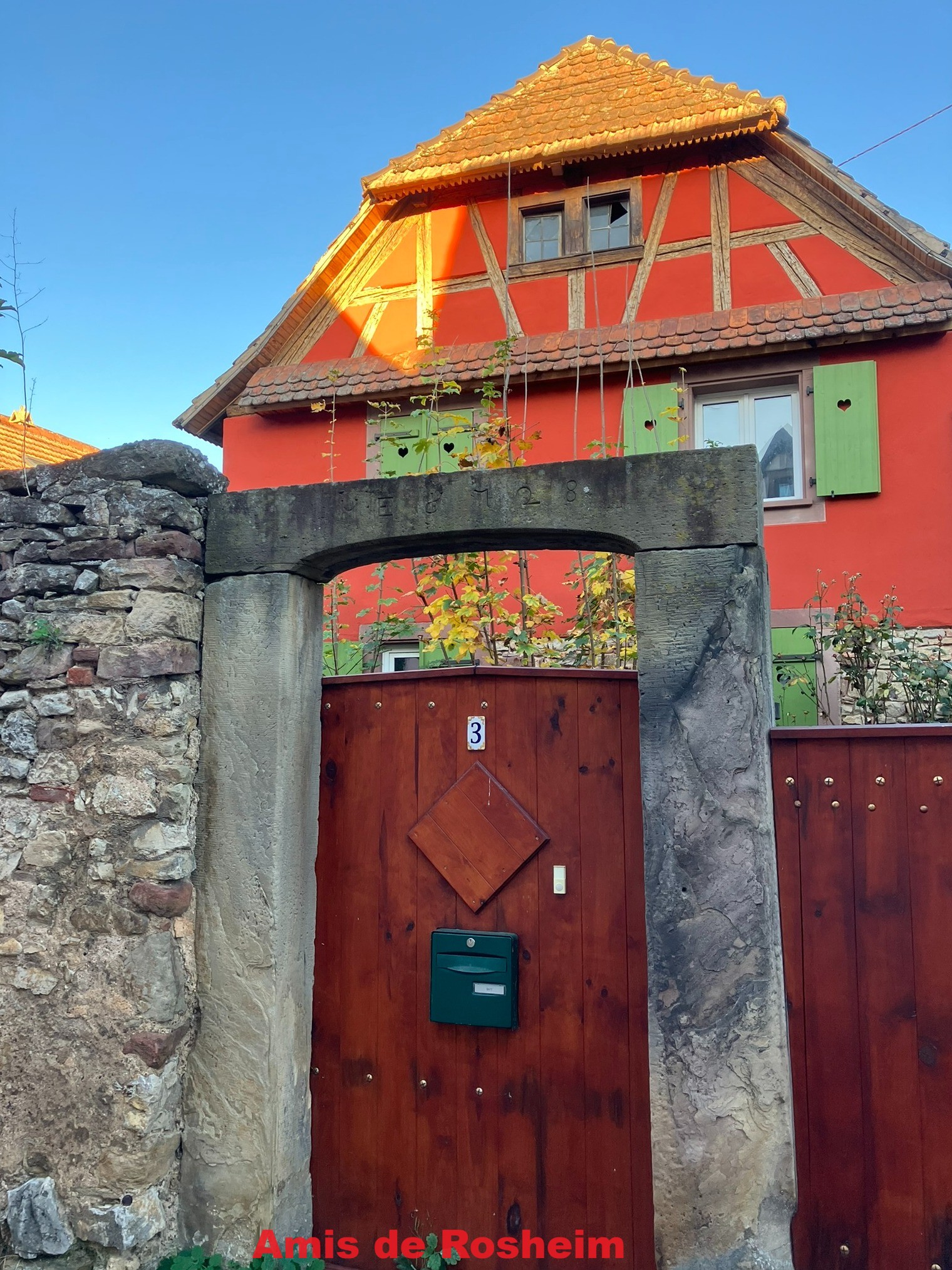 3 – 4 : Le numéro 3 avec son linteau de porte daté de 1708 et les initiales H E.
