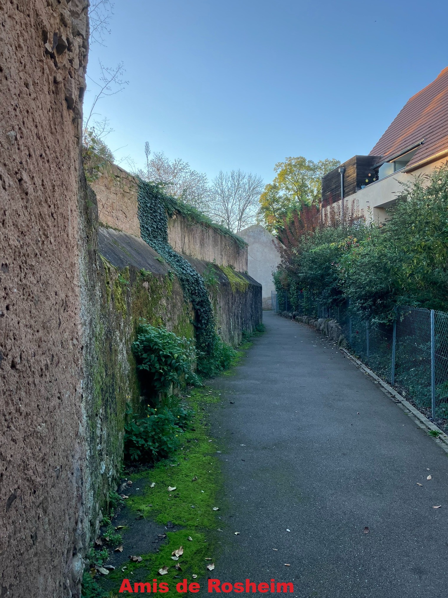 8 – Au bout de la rue, un petit passage piétonnier permet de sortir des remparts et rejoindre le Hellerbach. Il longe l’ensemble immobilier construit sur le terrain des anciennes usines (SAPIT jusque dans les années 1960 puis Schlumberger).