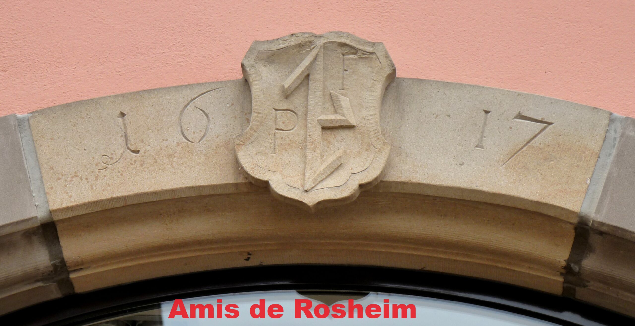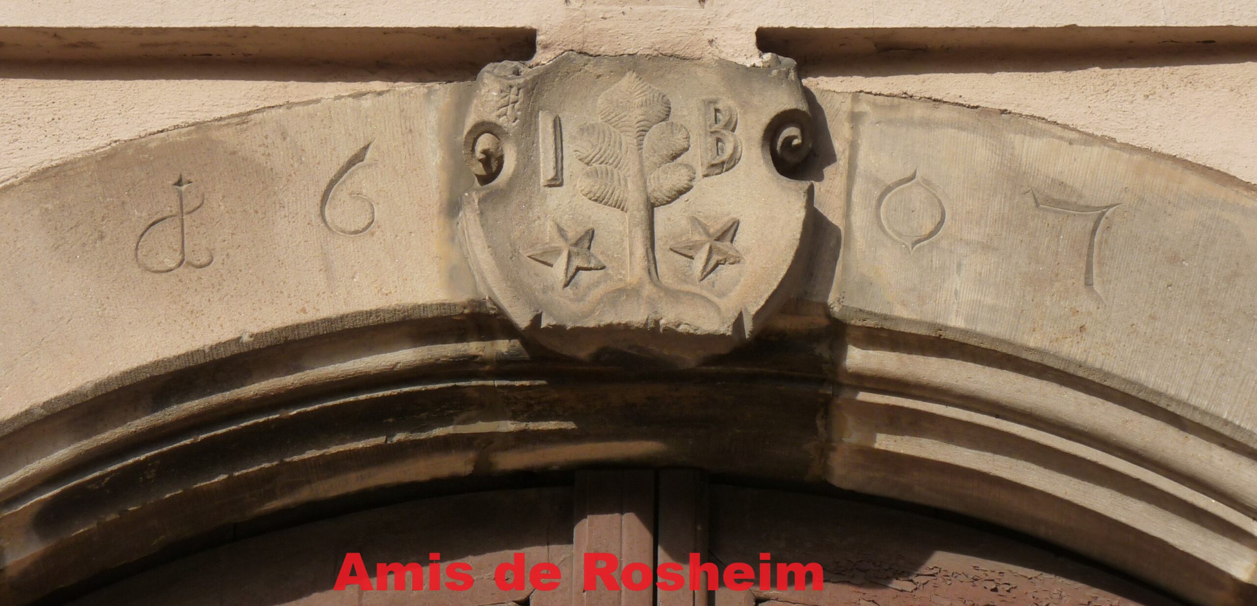8 – La clé d’arc du porche porte un emblème de bourgeois, ainsi que la date de 1607. Les initiales I B qui entourent l’arbre permettent de penser qu’il s’agit des armes de Jacob Baum.