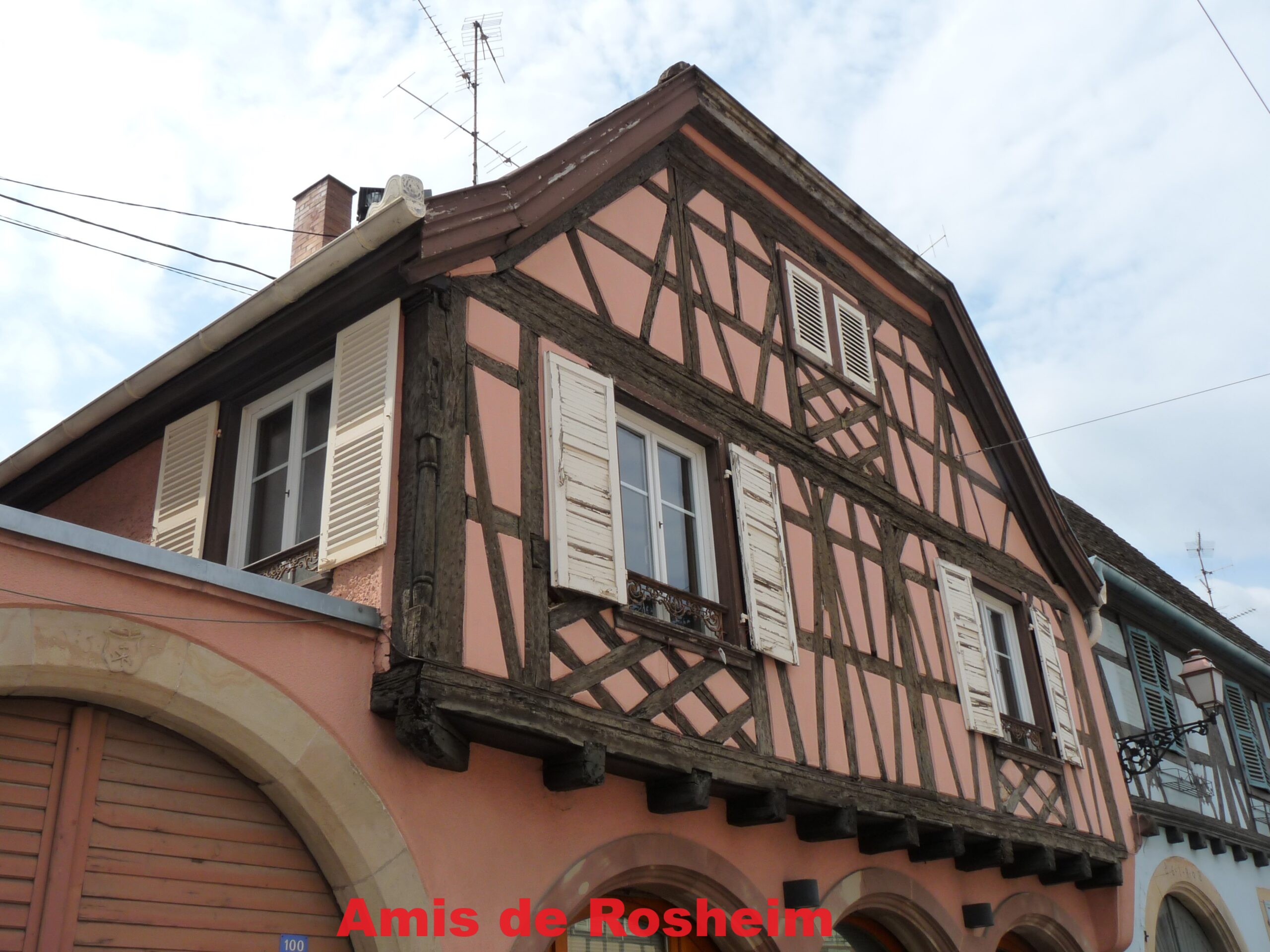 4-5-6 : Au numéro 98 : belle maison de l’entreprise de peinture de Joseph Grau qui était également photographe et qui nous a laissé de nombreuses photos du début du XXème siècle. Cette entreprise avait été reprise de père en fils sur 4 générations. Au-dessus de la porte cochère figure la date de 1608, ainsi que les initiales I R. La date se retrouve aussi au haut de la poutre cornière proche du numéro 100.