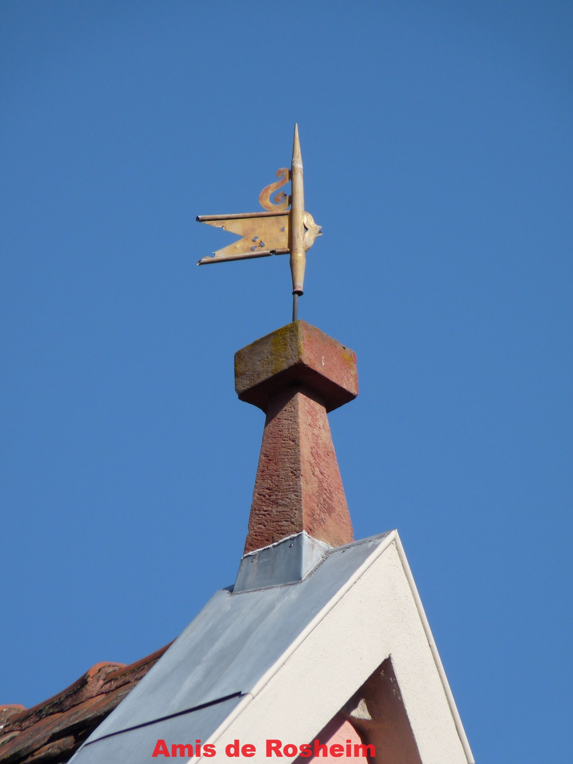 7 – La girouette de facture plus récente orne le pinacle remanié de la maison.