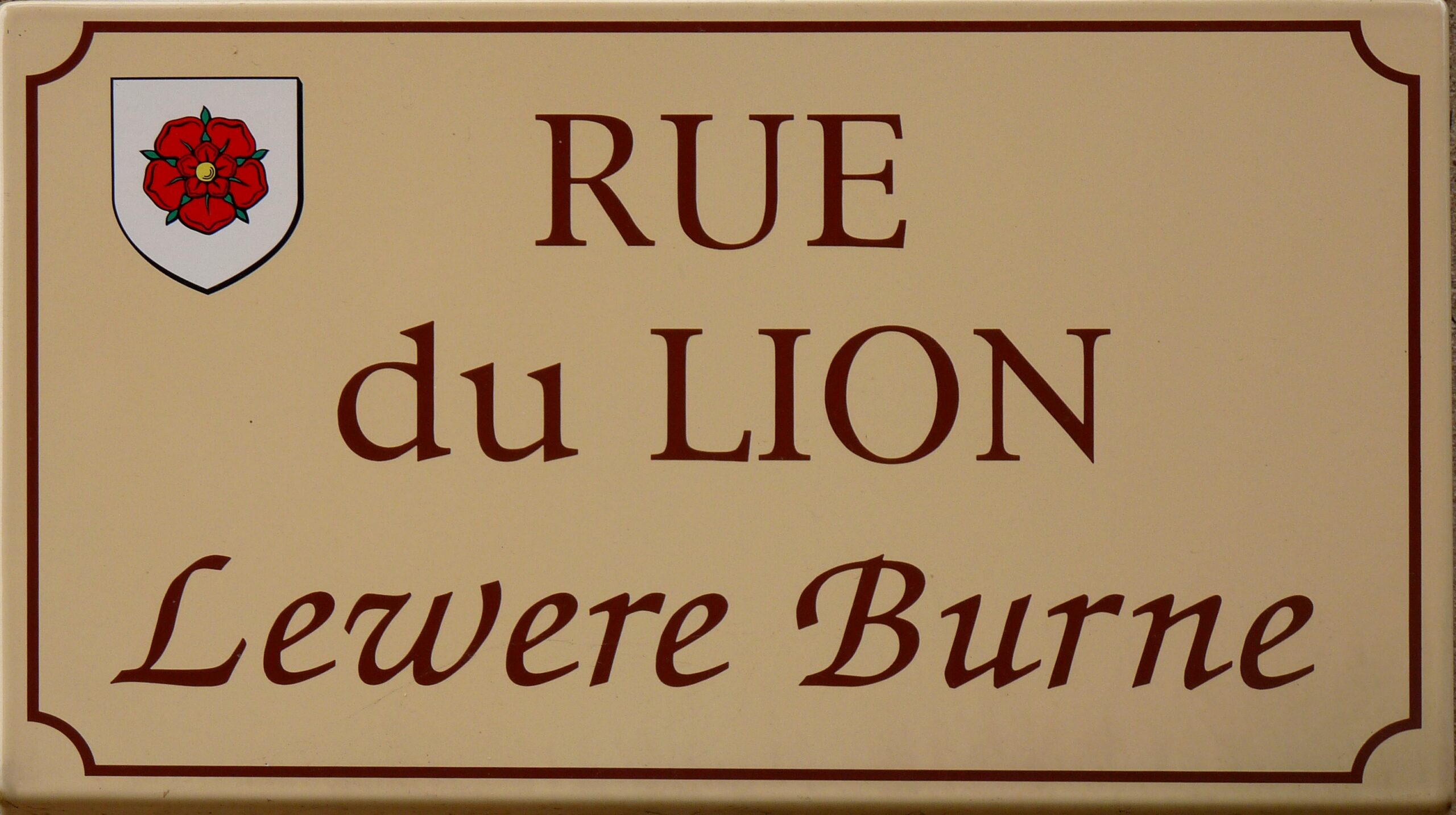 1 – A l’intersection de la rue du Lion avec la rue Braun se trouvait jadis un puits, comme le rappelle la plaque de rue. Ce puits a été supprimé en 1959 pour faciliter la circulation et l’accès aux caves Hubster juste en face. La place à l’intersection a été pavée et une silhouette de lion y a été intégrée au moyen de pavés de couleurs différentes.