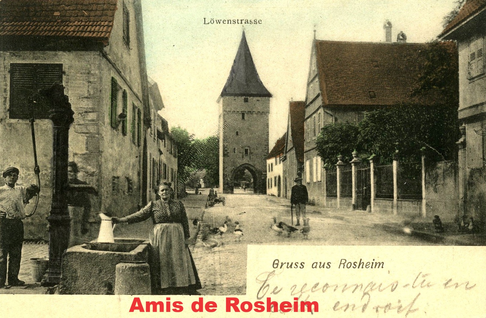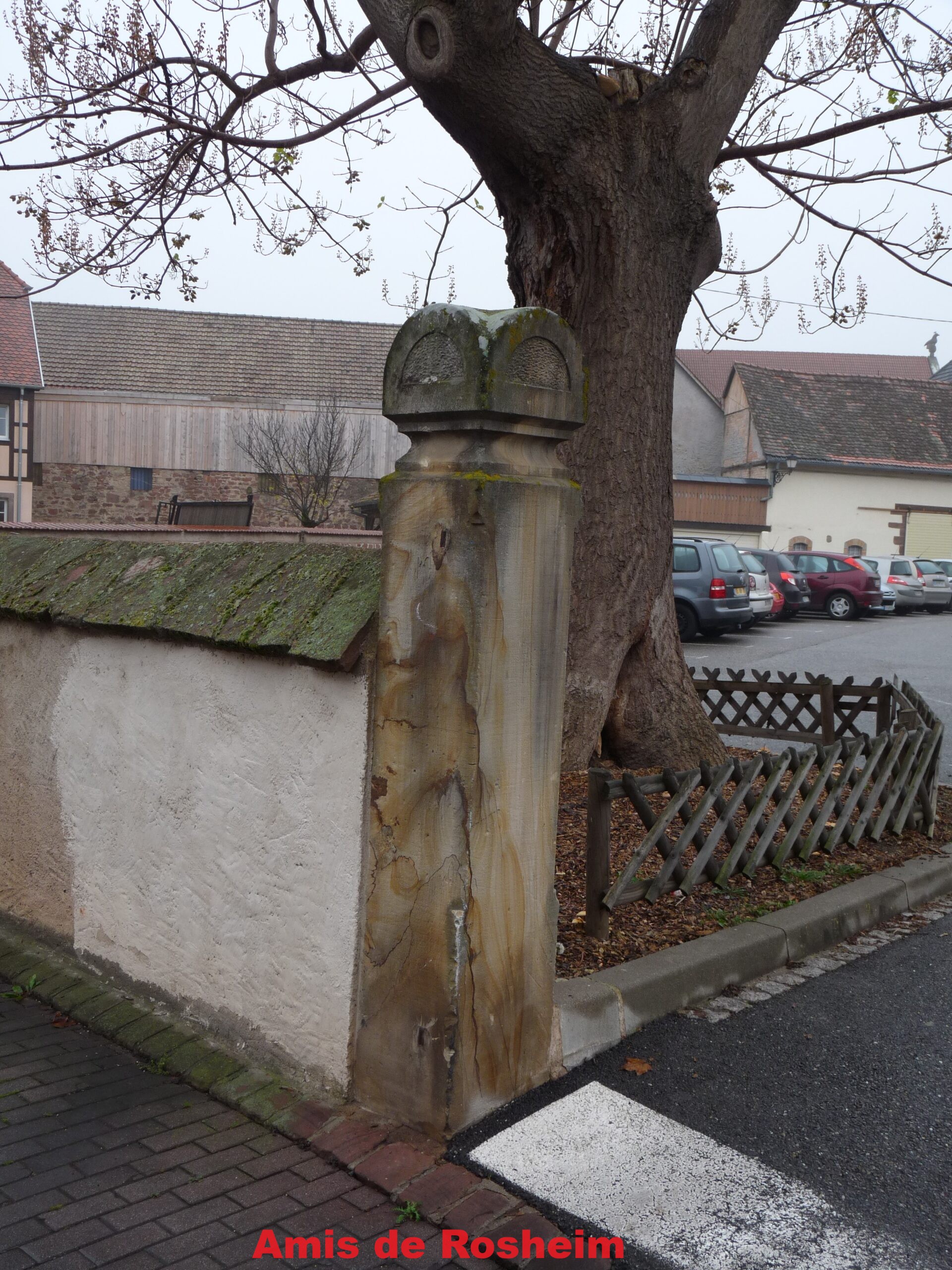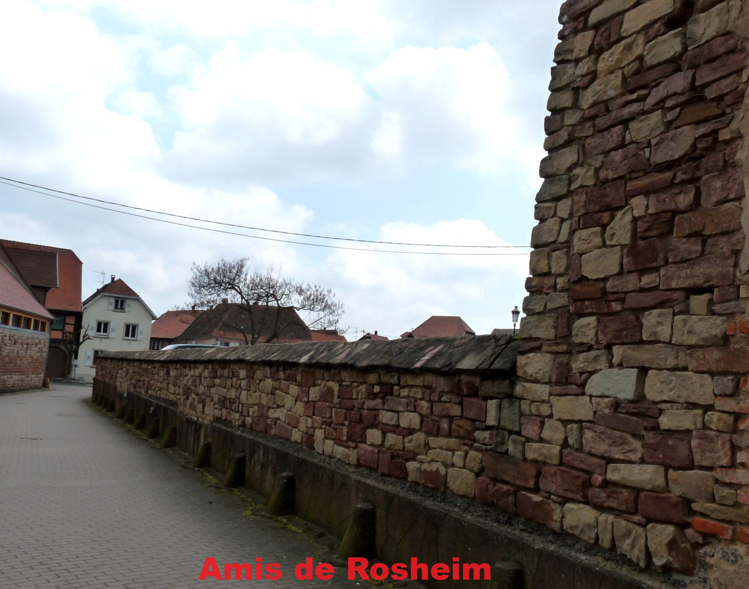 3-4 : A l’emplacement du parking actuel se situait une grande cave d’une capacité de 26 000 hectolitres installée dès 1909 par la société « Oberrheinischer Weinkeller Actien Gesellschaft« . Cette cave était directement reliée par un pipeline à la gare de Rosheim-Stadt (Rosheim-Ville) où arrivaient des trains de wagons-citernes à leur enseigne. Elle a été rachetée en 1922 par les frères Hubster qui en firent les Grandes Caves Sainte Richarde, elles cessèrent leur activité à la fin des années 1970.