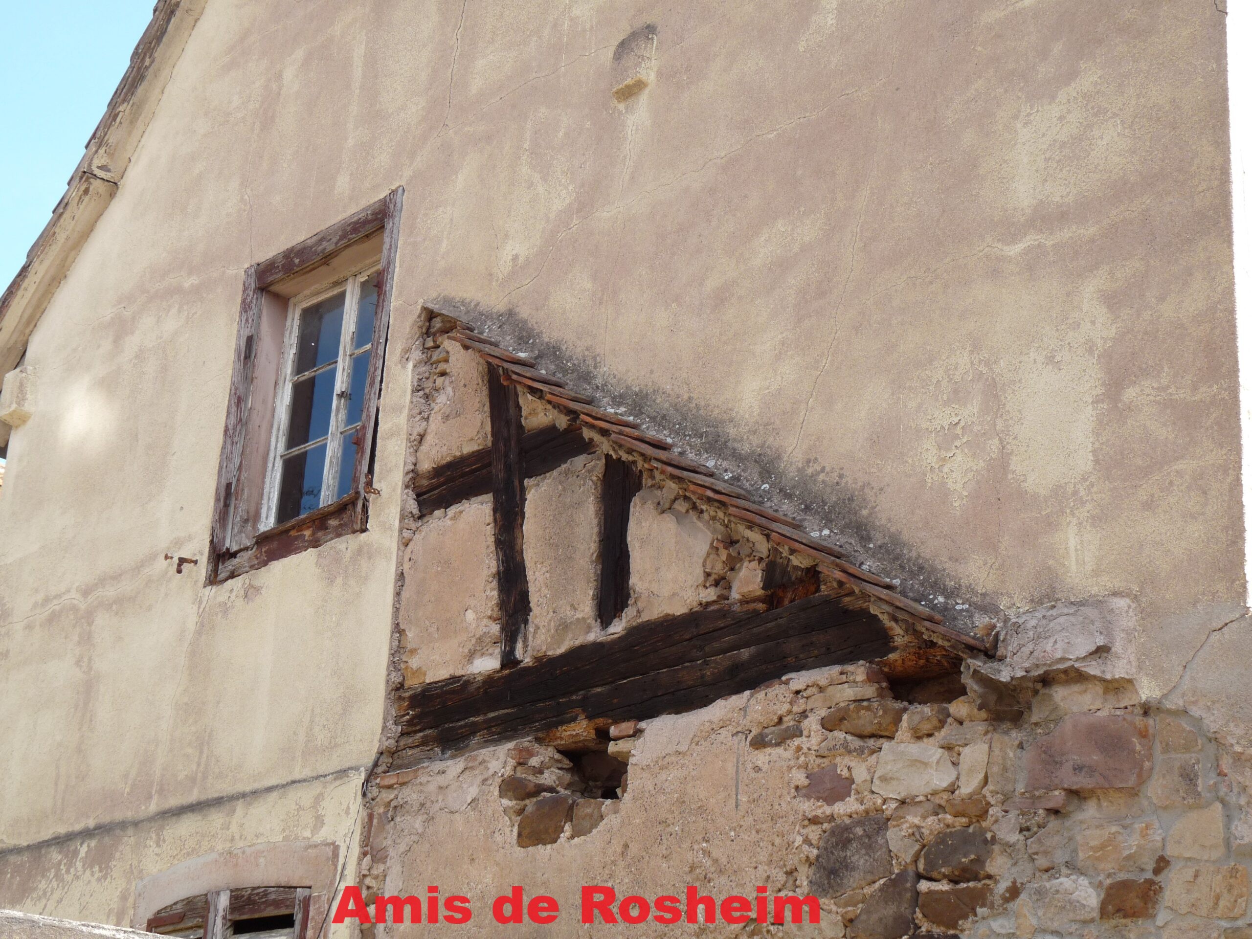 1 – au numéro 17, le mur pignon en pan de bois donnant sur le petit passage derrière le mur d’enceinte. On distingue bien le mode de construction à partir du colombage.