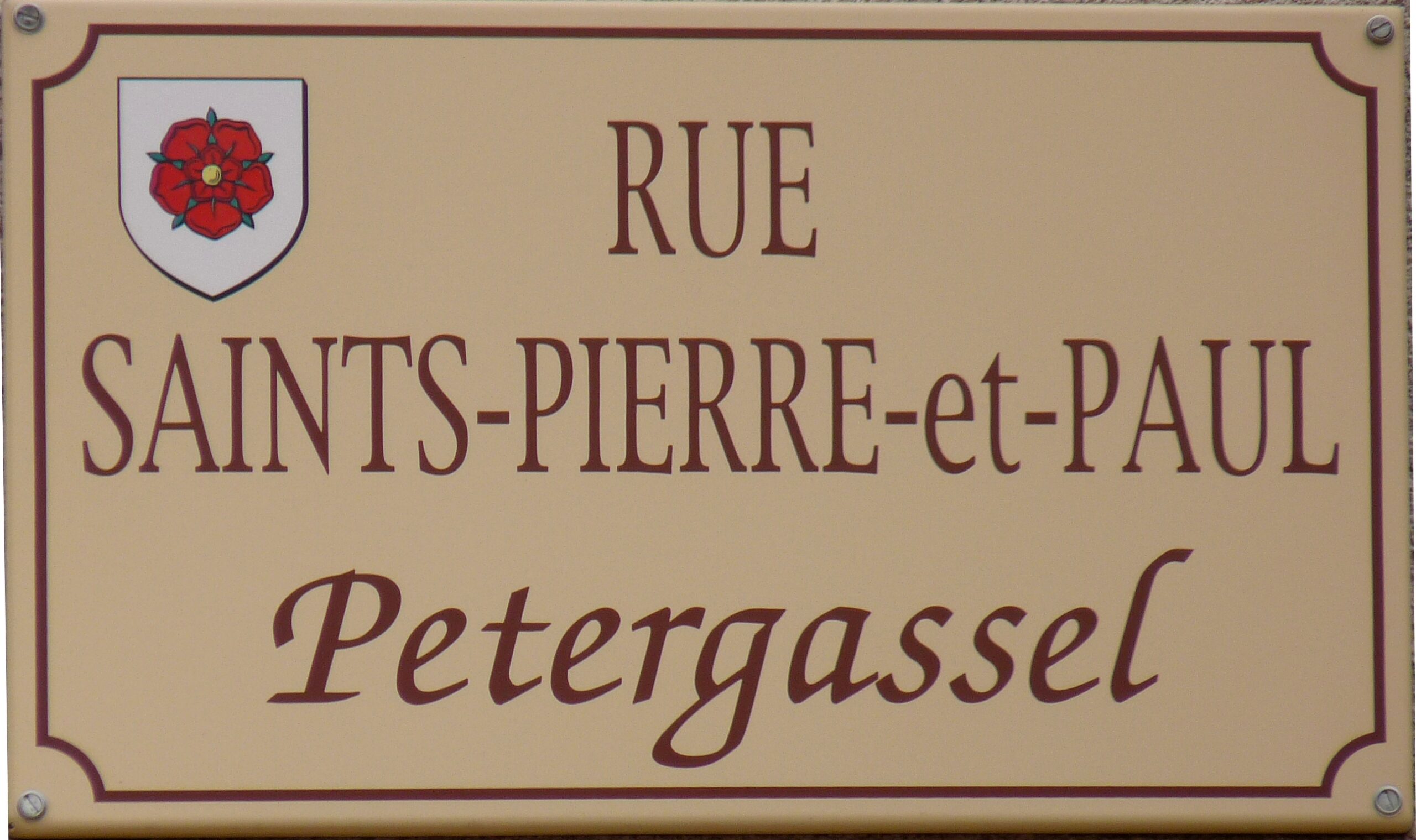 Dans cette petite rue, à côté de L’église Saints-Pierre-et-Paul, dénommée au XIXe siècle : Impasse Pierre / Peter gässel. En effet, à l’origine, l’église était placée sous le seul vocable de Saint Pierre.