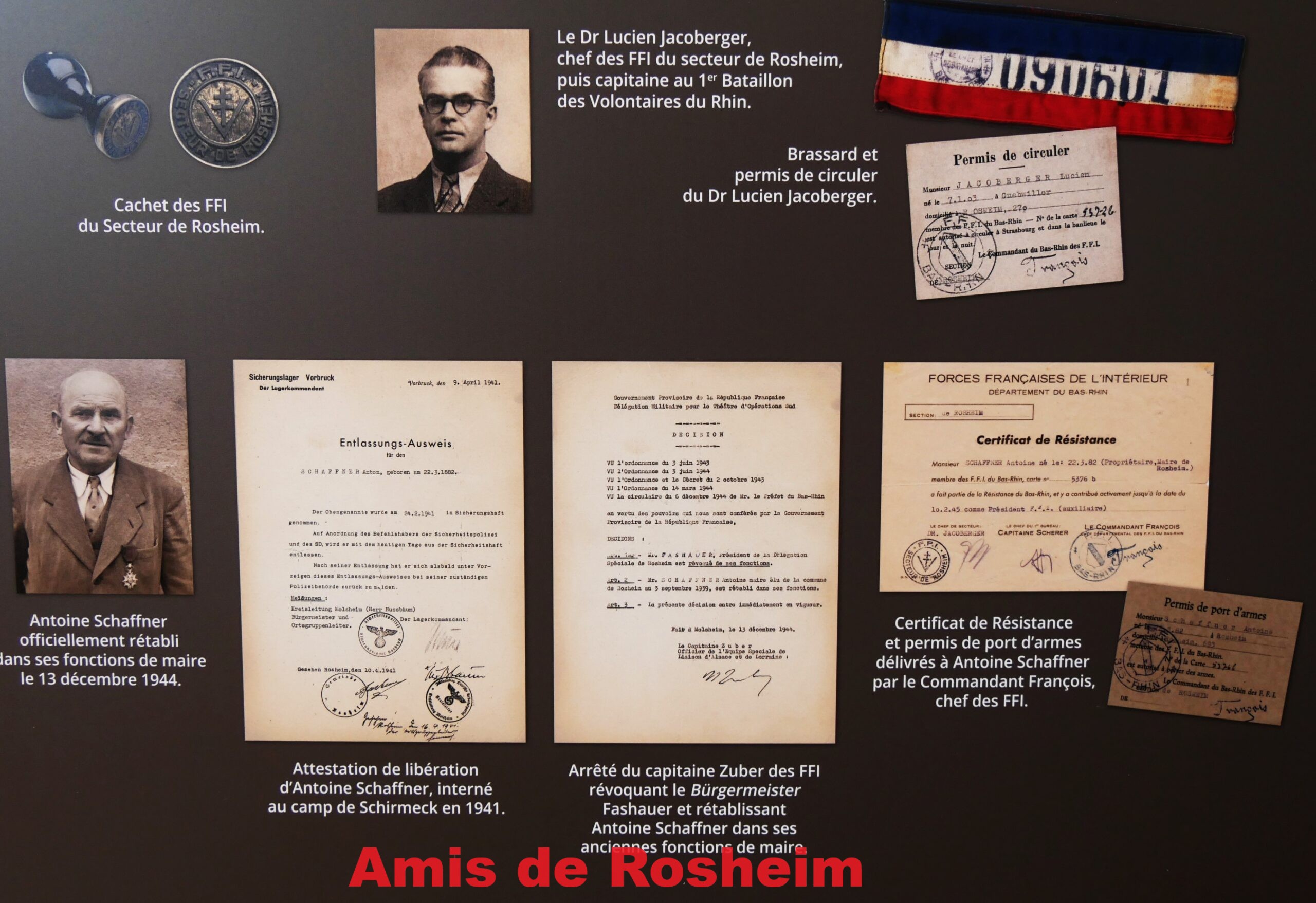 5 – Les Forces Françaises de l’Intérieur (FFI) ont joué un rôle essentiel dans le retour à la France. Les 123 Rosheimois membres des FFI assurent, dans un premier temps, des missions en vue d’assurer le retour à la vie normale : maintien de l’ordre, contrôle du ravitaillement et début de la remise en place de l’administration française. Durant les mois qui suivent, ces unités sont utilisées militairement dans la protection de points sensibles, la sécurité des arrières ou encore la garde de prisonniers.