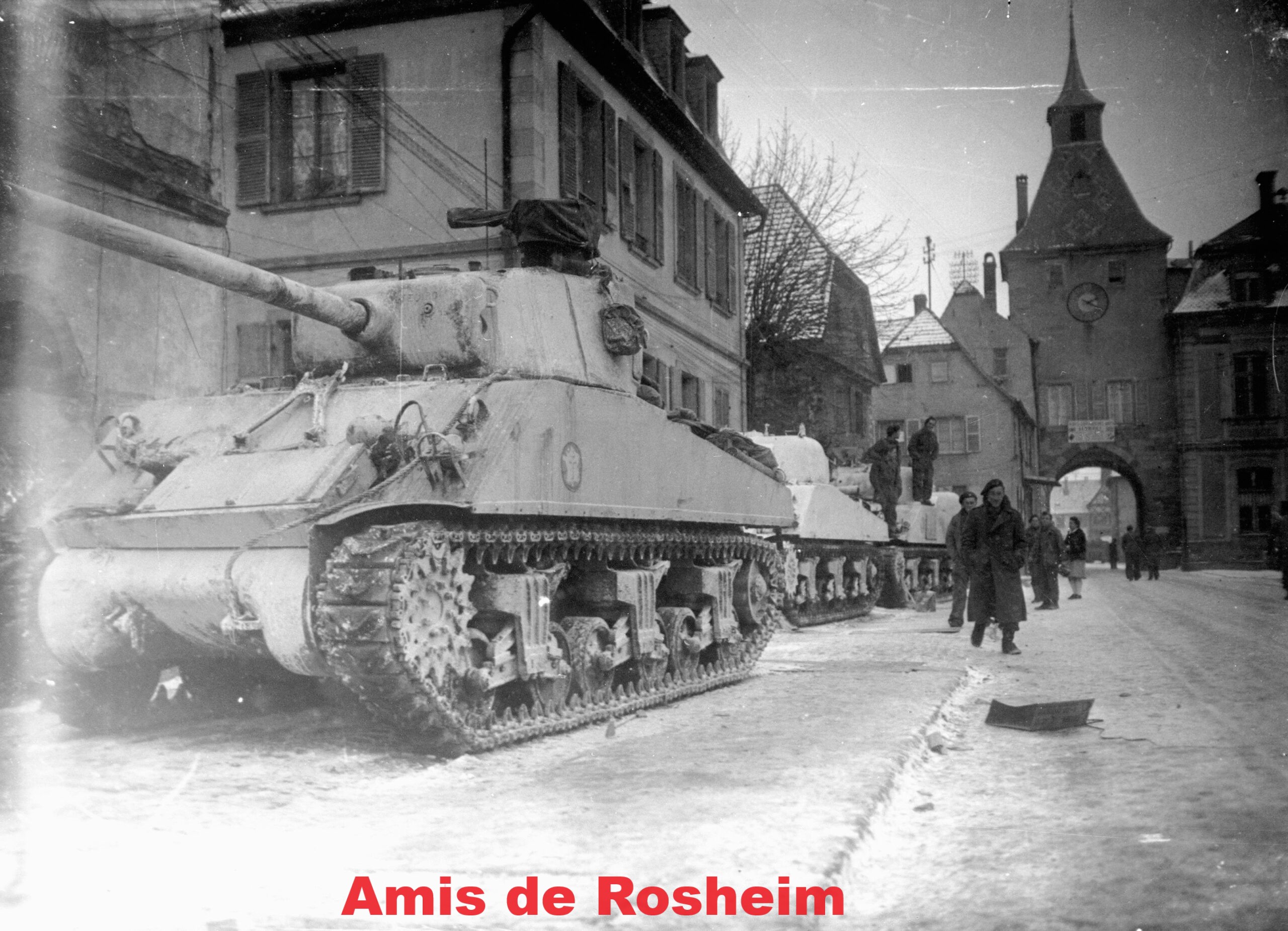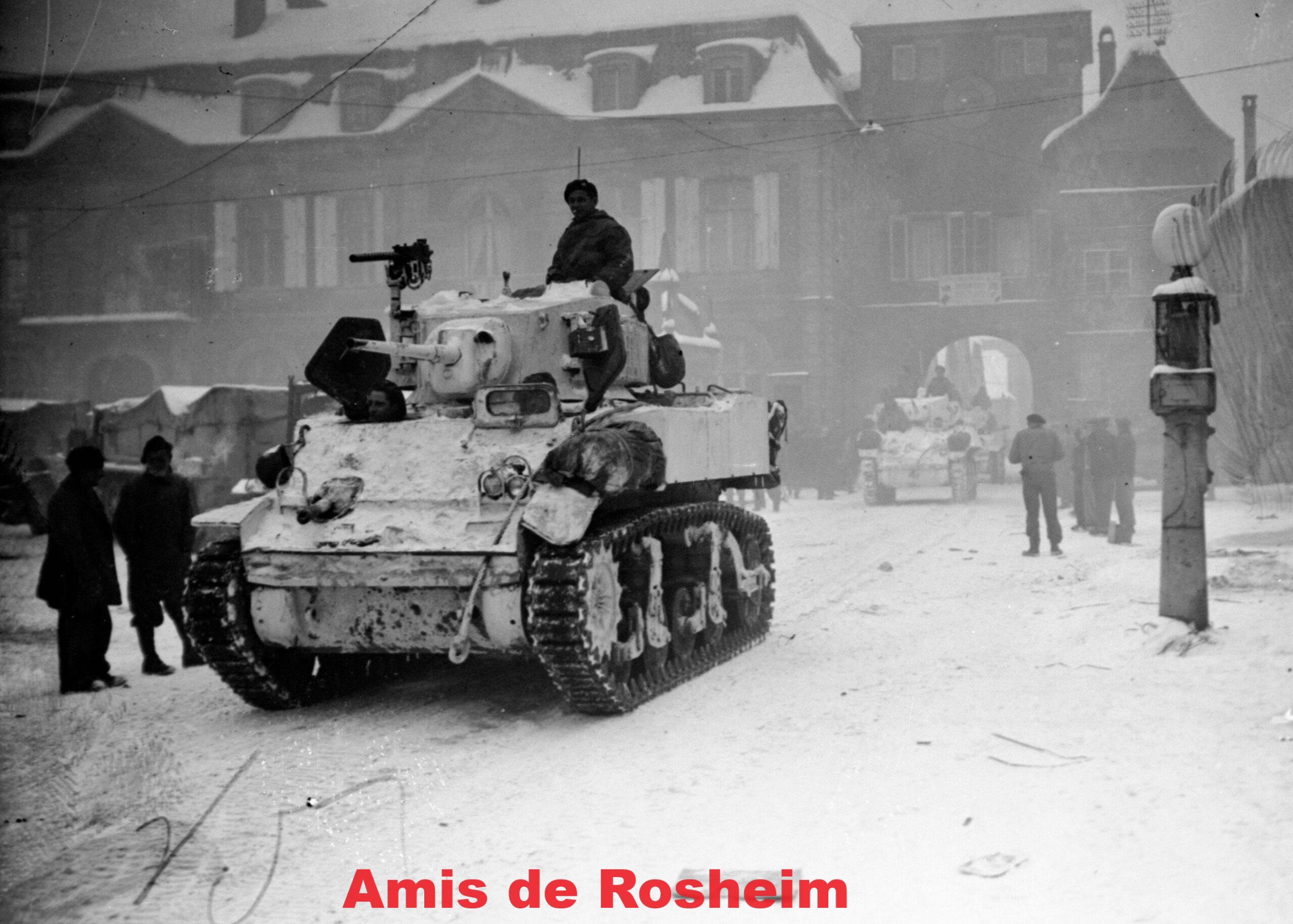 Pour stopper l’offensive Nordwind déclenchée en Alsace et réduire la Poche de Colmar, les troupes blindées se succèdent à Rosheim au coeur du terrible hiver 1945. C’est d’abord la 5e DB qui stationne dans la cité romane du 10 au 19 janvier, puis ce sont les chars du 501e Régiment de Chars de Combat de la 2e DB du Général Leclerc qui s’y installent du 20 au 25 janvier 1945.