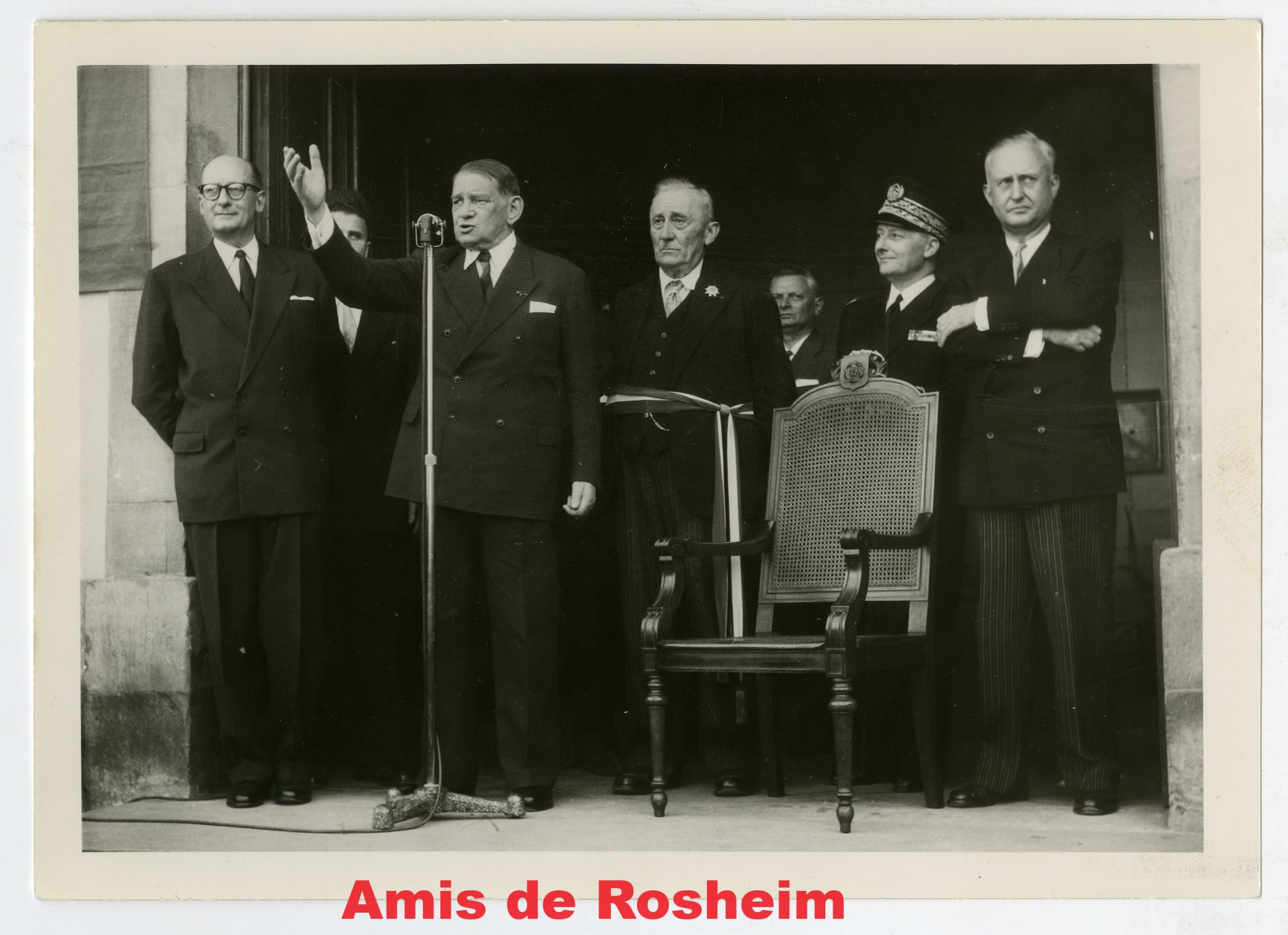Ces paroles de M. Coty furent accueillies par un enthousiaste « Vive monsieur le Président ». Après avoir signé le livre d’or de la ville, le président déposa encore une gerbe au monument aux morts de la ville avant de quitter Rosheim en direction du Mont Sainte-Odile.